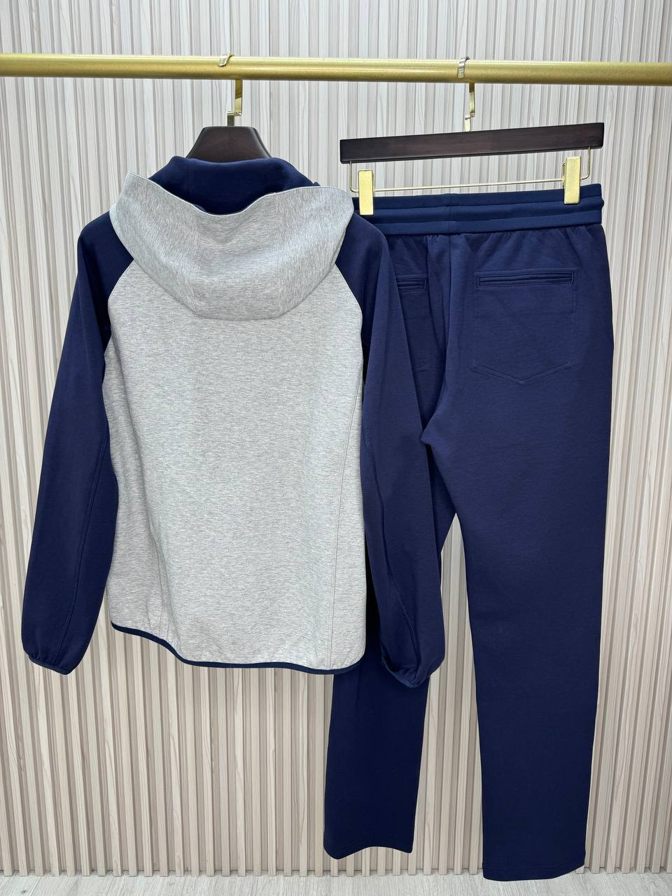 Стильный спортивный костюм Brunello Cucinelli – идеальный выбор для тех, кто ценит комфорт и элегантность в повседневной жизни. Костюм выполнен в сдержанной цветовой гамме, что позволяет легко сочетать его с другими элементами гардероба.