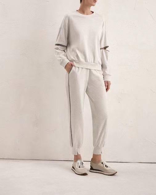 Спортивный костюм Brunello Cucinelli LUX-68685 представляет собой идеальное сочетание стиля и комфорта. Этот комплект, выполненный в спокойном светло-сером оттенке, подчеркивает элегантность бренда. Комплект идеально подойдет для создания расслабленных, но изысканных образов.