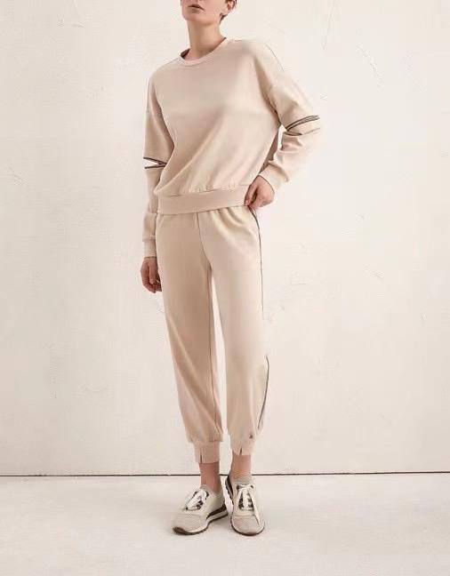 Спортивный костюм Brunello Cucinelli LUX-68686 — это идеальный выбор для создания стильных и комфортных образов. Костюм выполнен в спокойном бежевом цвете, что делает его универсальным для различных сочетаний. Сочетание элегантности и спортивного стиля от Brunello Cucinelli подчеркивает ваш безупречный вкус.