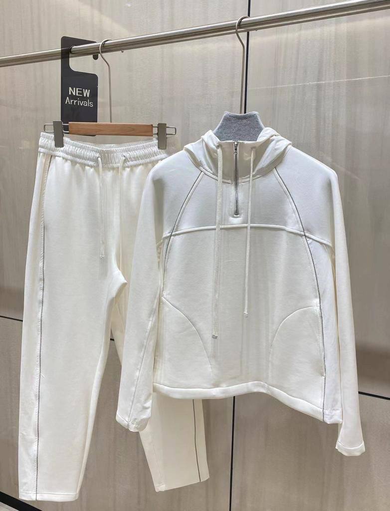 Костюм спортивный Brunello Cucinelli LUX-74825 представляет собой стильный и комфортный ансамбль, выполненный в современном дизайне. Комплект включает в себя худи и брюки, выполненные в молочно-белом цвете. Отлично подойдет для создания образов в стиле casual.