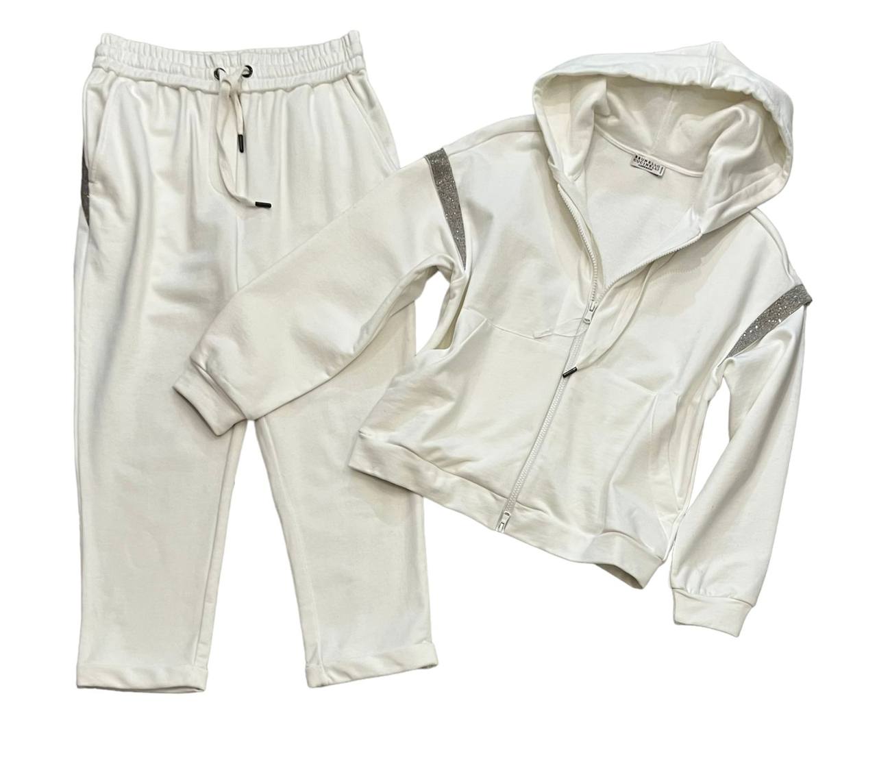 Костюм спортивный Brunello Cucinelli LUX-83737 — это стильный и комфортный ансамбль, выполненный в современном спортивном стиле. Он представляет собой комплект, состоящий из куртки с капюшоном и брюк, выполненный в белом цвете. Идеально подходит для повседневной носки и занятий спортом.