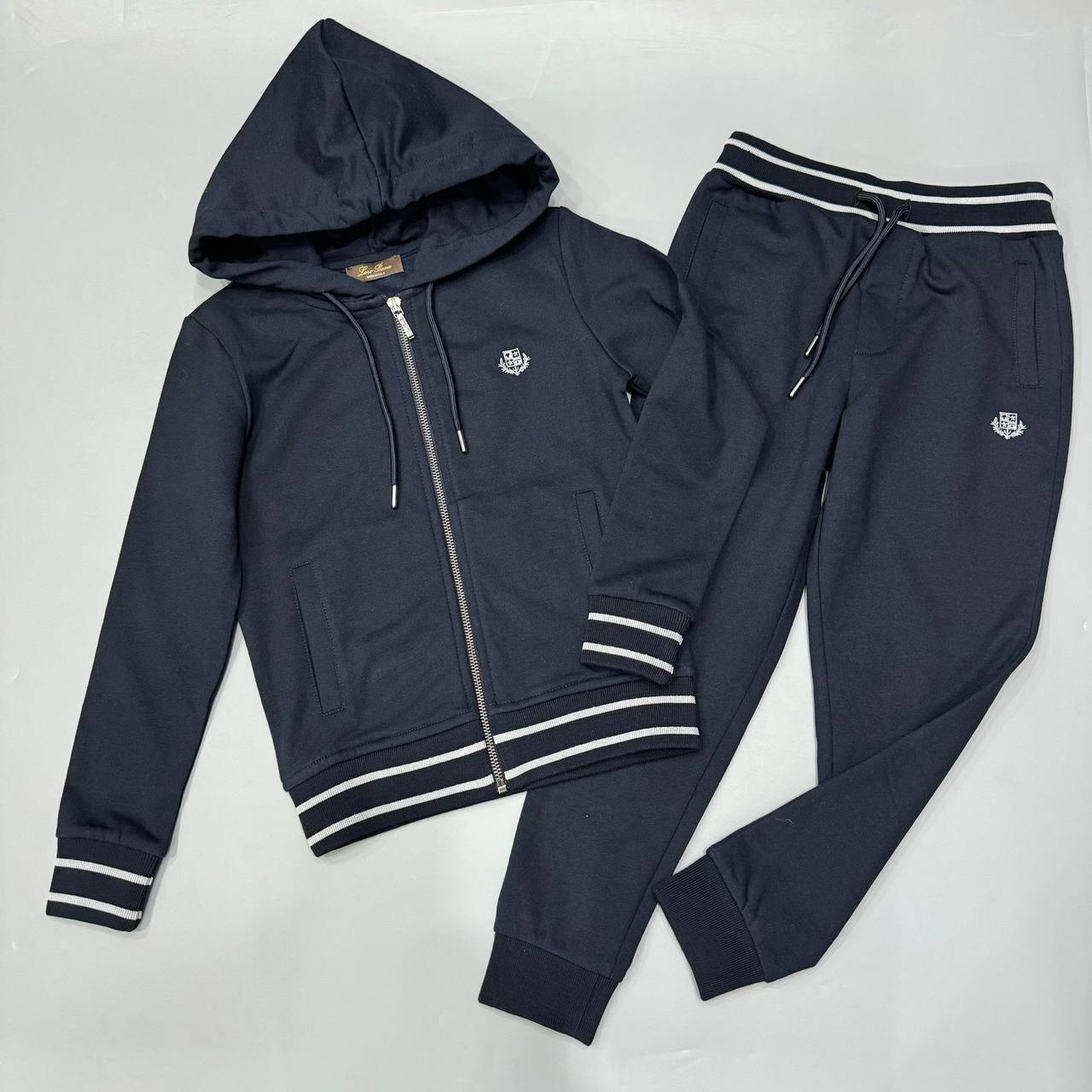 Костюм утепленный Brunello Cucinelli LUX-111197 - это стильный спортивный костюм темно-синего цвета, состоящий из худи с капюшоном на молнии и спортивных штанов. Костюм идеально подходит для повседневной носки, обеспечивая комфорт и свободу движений. Он сочетает в себе спортивный стиль и элегантность.