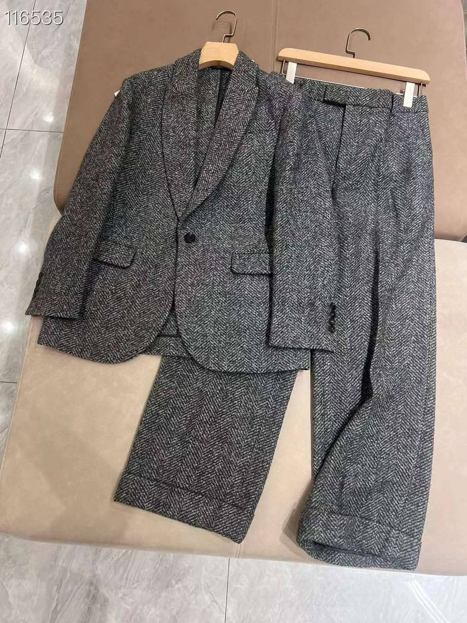 Костюм женский Brunello Cucinelli LUX-113217, воплощает в себе элегантность и стиль. Этот костюм, выполненный в классическом дизайне с акцентом на комфорт и изысканность, идеально подходит для создания утонченного образа. Серый цвет и текстурированный материал добавляют костюму универсальности, позволяя сочетать его с различными элементами гардероба для разных поводов.
