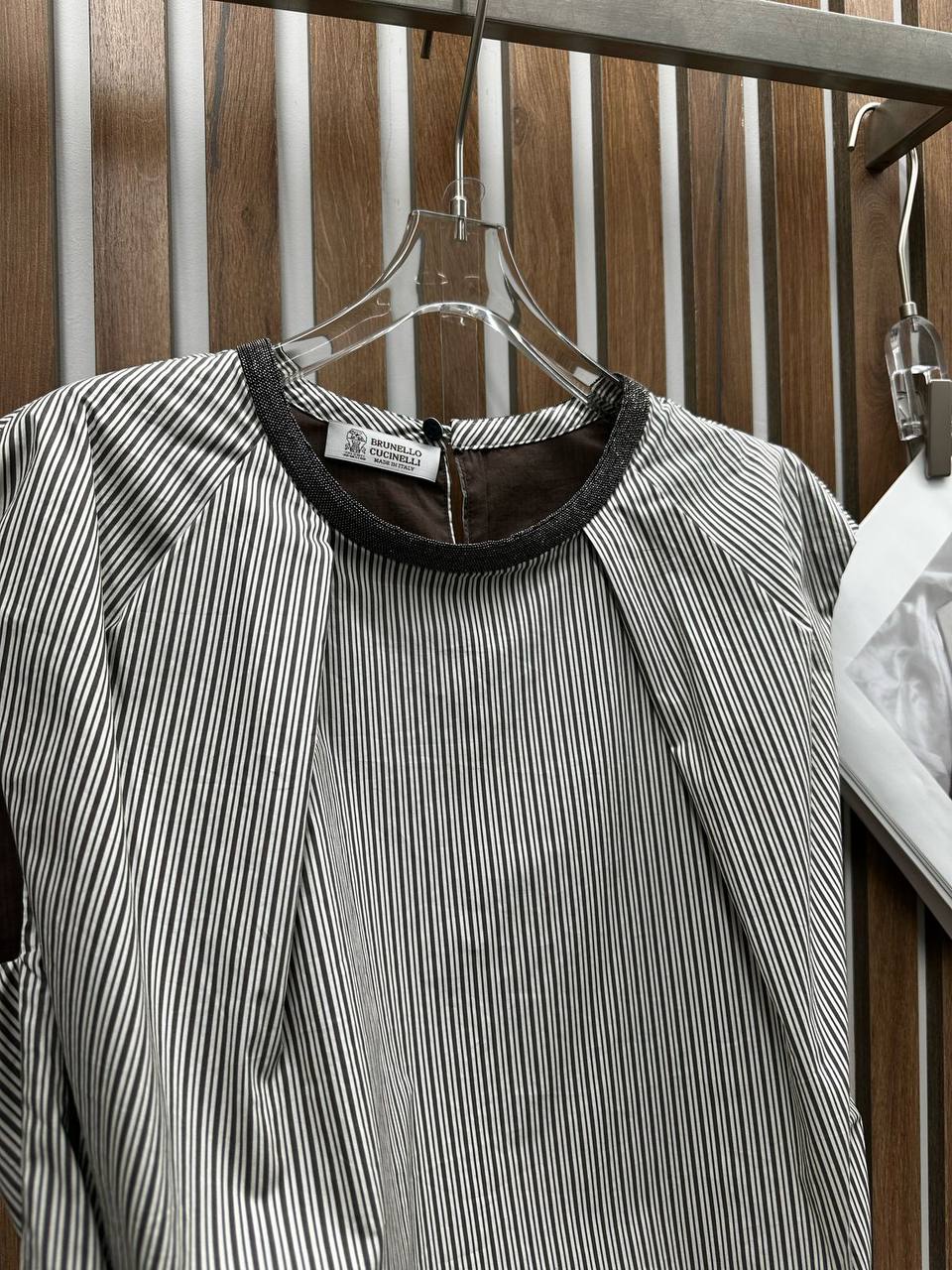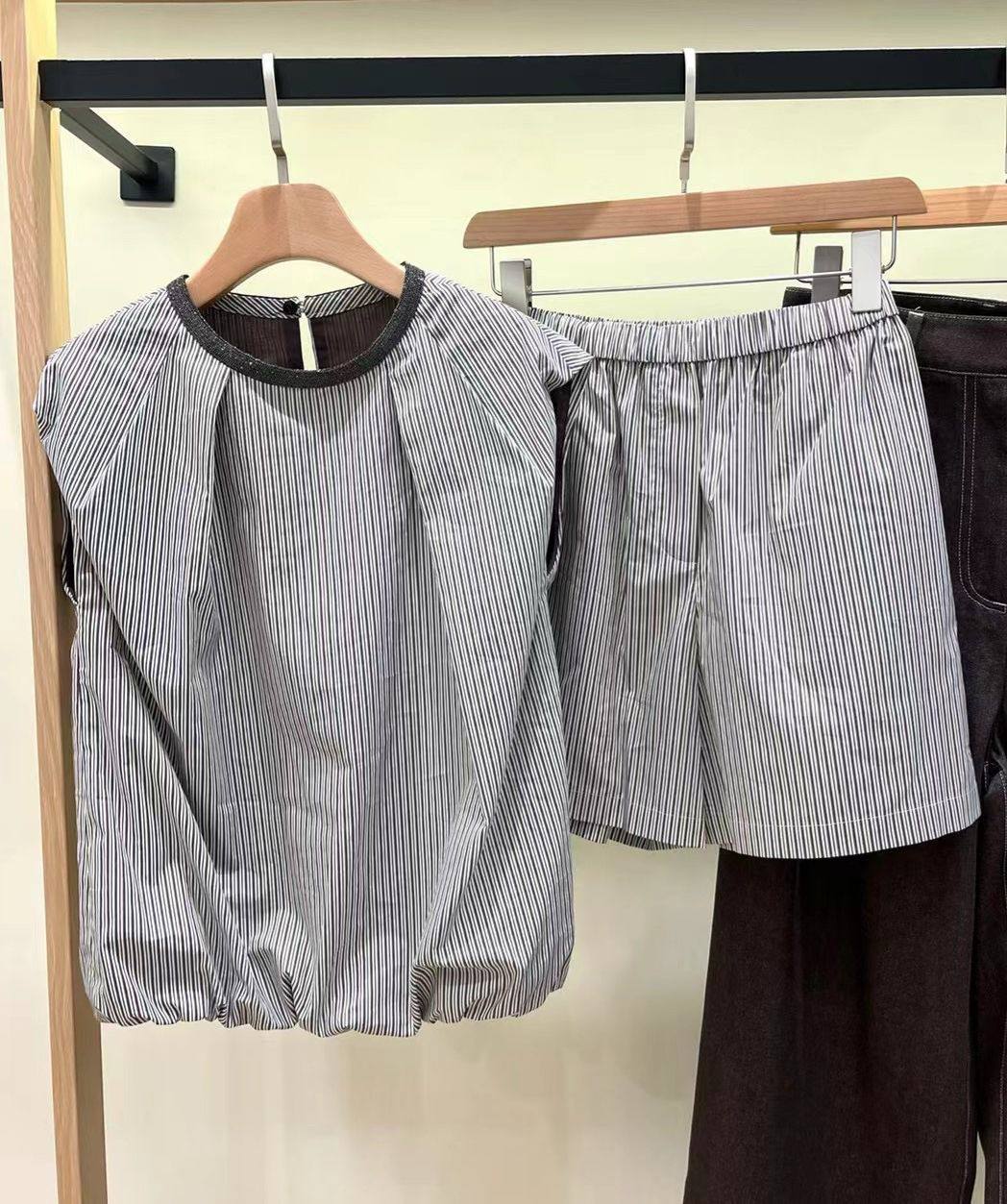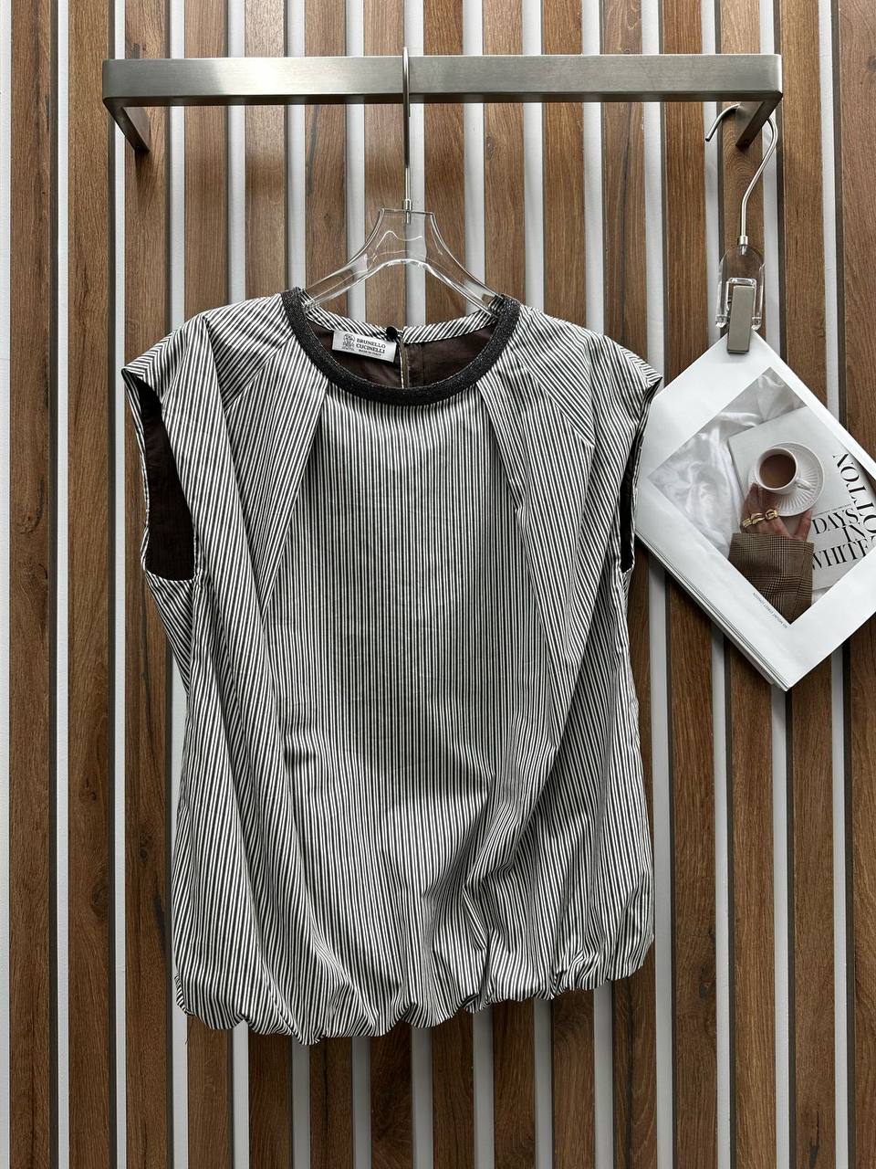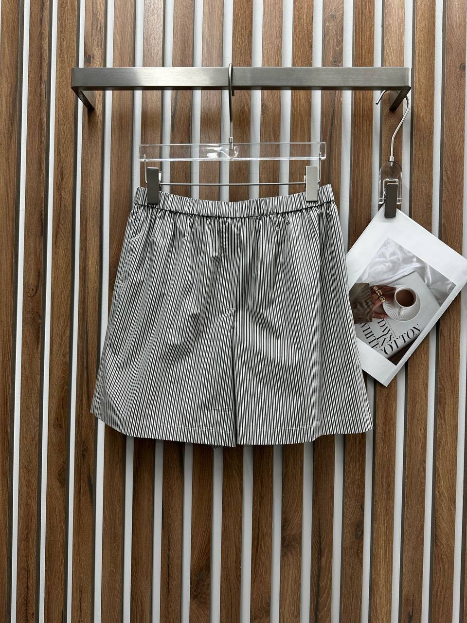 Костюм женский Brunello Cucinelli LUX-118466 - это комплект, состоящий из топа и шорт. Комплект выполнен в стиле casual, что подразумевает его универсальность и удобство для повседневной носки. Шорты и топ в полоску, сочетание белого и серого цветов.