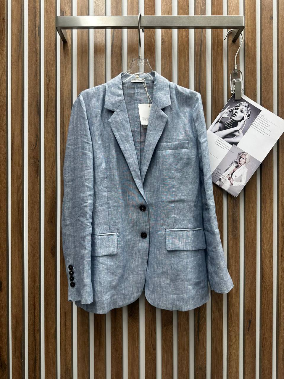 Элегантный женский костюм Brunello Cucinelli LUX-122040 представляет собой современный взгляд на классический стиль. Костюм состоит из пиджака и брюк, выполненных в приглушенном голубом оттенке. Идеальный выбор для создания изысканного образа.