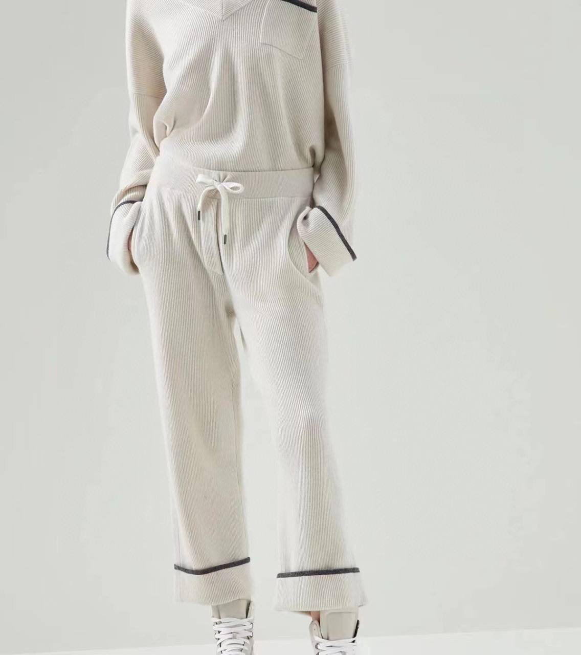 Женский костюм Brunello Cucinelli LUX-77446 — это воплощение изысканного комфорта и элегантности в стиле casual. Этот костюм кремового оттенка с контрастными деталями, представляет собой идеальное сочетание уюта и стиля. Его текстурированная ткань создает ощущение мягкости и тепла, идеально подходящего для повседневной носки.