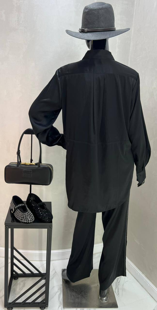 Стильный женский костюм Brunello Cucinelli LUX-120556, выполненный в классическом черном цвете, придаст образу элегантность и изысканность. Костюм состоит из рубашки и широких брюк, идеально подходящих для создания утонченного образа.
