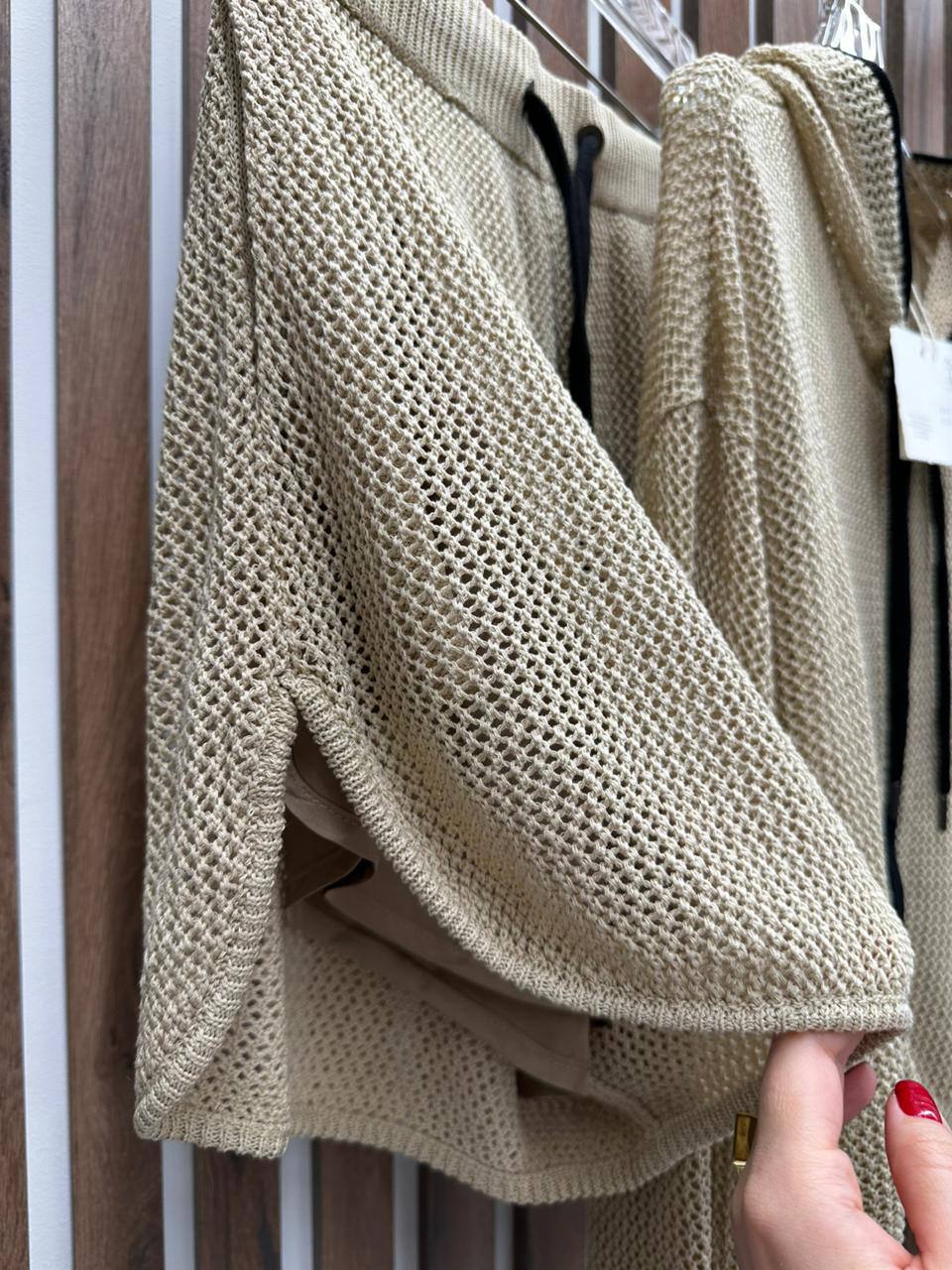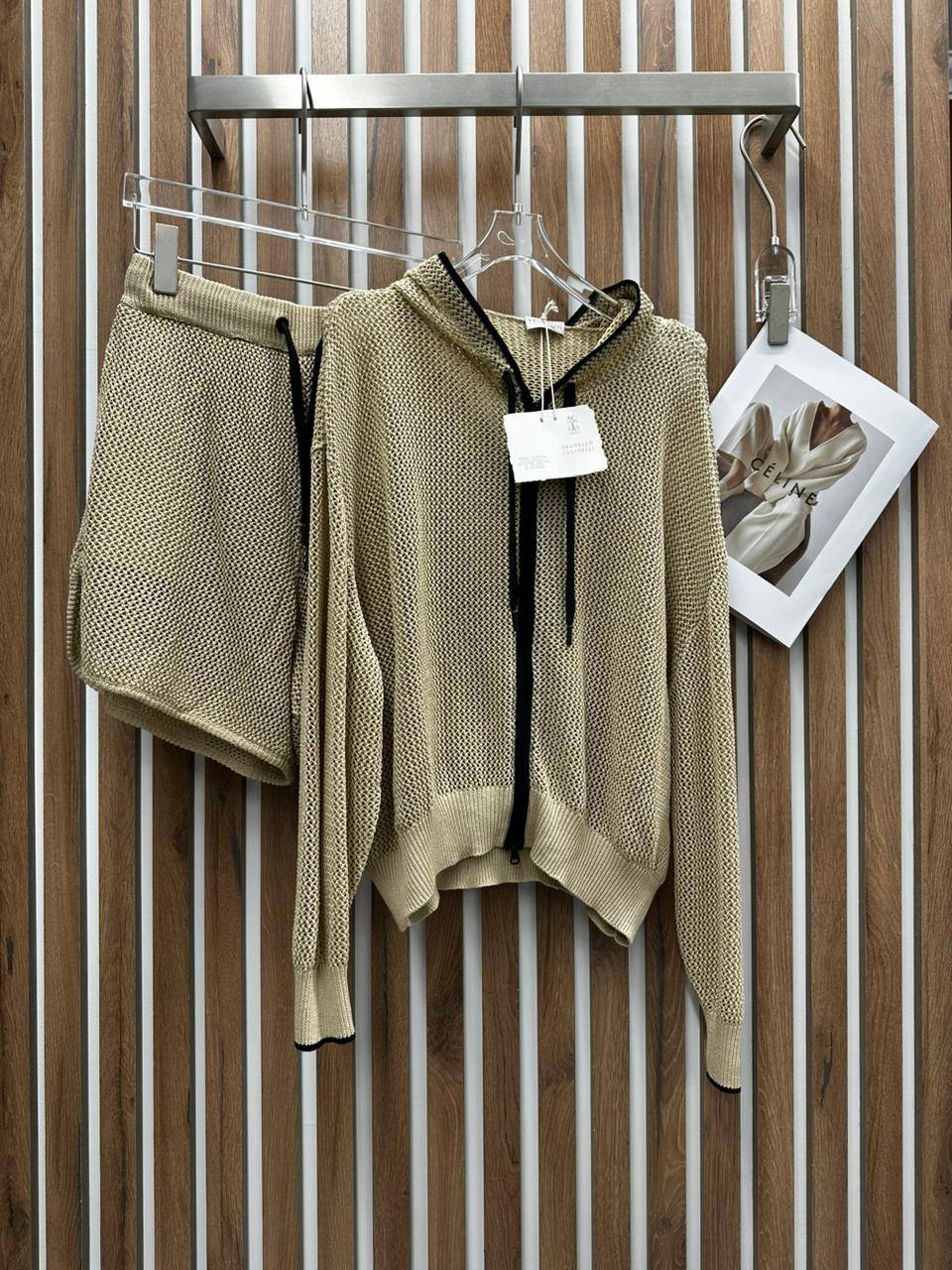 Костюм женский Brunello Cucinelli LUX-105303 представляет собой стильный и комфортный ансамбль, состоящий из худи и шорт. Выполненный в мягком бежевом цвете, костюм имеет сетчатую текстуру, которая придает ему легкость и оригинальность. Идеально подходит для создания расслабленных образов в повседневной жизни.