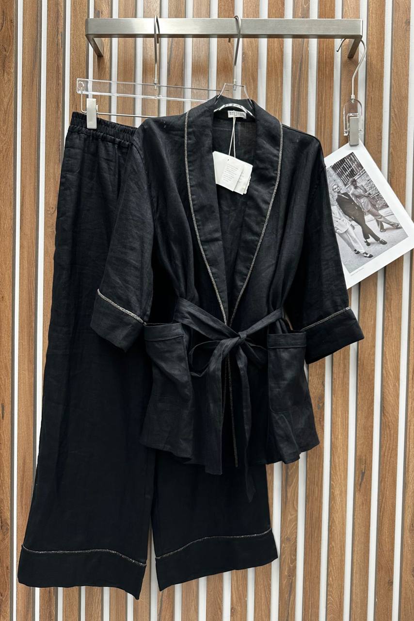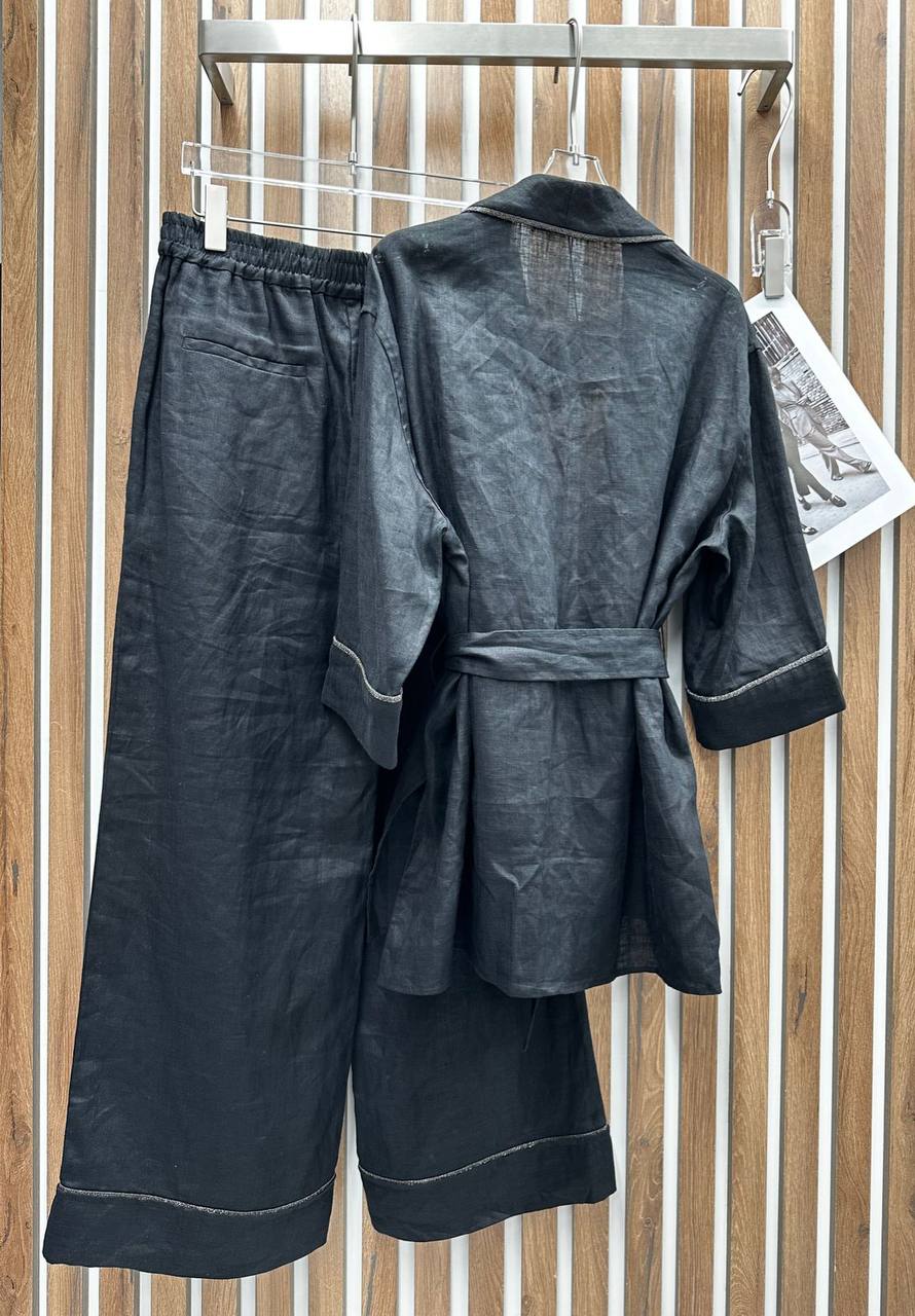 Костюм женский Brunello Cucinelli LUX-106884 представляет собой элегантный ансамбль для создания стильного образа. Этот костюм состоит из свободной накидки с поясом и брюк, выполненных в дымчато-сером цвете. Он сочетает в себе изысканность и комфорт, идеально подходит для повседневной носки или особых случаев.
