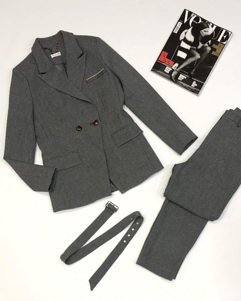 Brunello Cucinelli Костюм женский брючный LUX-23295 представляет собой элегантный и стильный брючный костюм, выполненный в классическом дизайне. Этот комплект идеально подойдет для создания утонченных образов, как для деловых встреч, так и для более торжественных мероприятий.