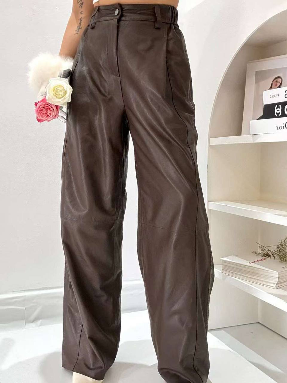Кожаные брюки Brunello Cucinelli LUX-110756 — это образец элегантности и стиля. Брюки выполнены в свободном крое, что обеспечивает комфорт и свободу движений. Тёмно-коричневый цвет добавляет изделию благородства и делает его универсальным для создания разнообразных образов.