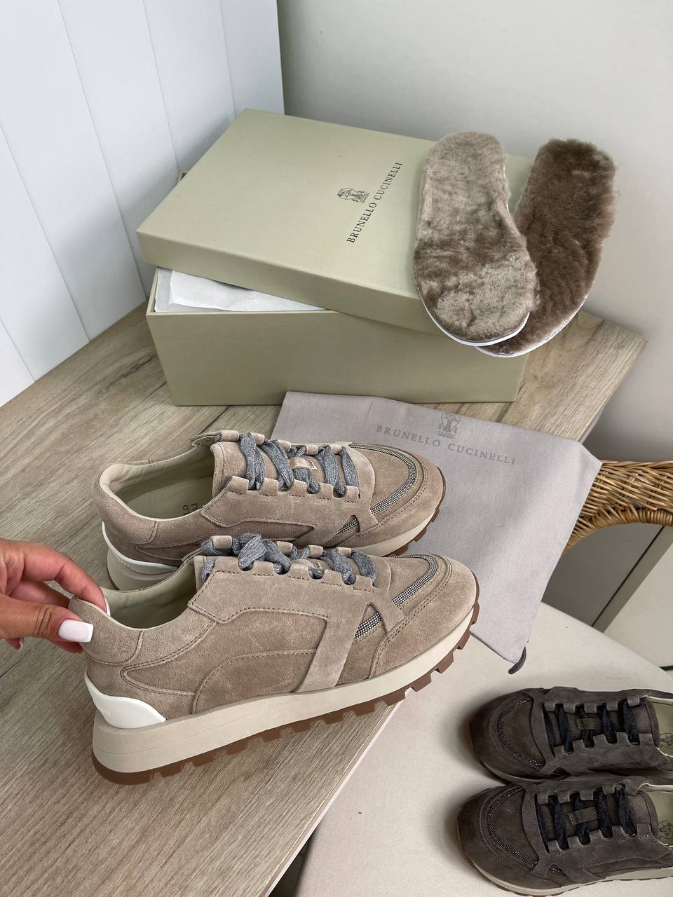 Кроссовки Brunello Cucinelli LUX-75411, представленные на изображении, — это стильные повседневные кроссовки, выполненные в нейтральном бежевом цвете. Они имеют сложную текстуру, сочетающую замшу и другие материалы, создавая утонченный и в то же время практичный образ. Идеально подходят для создания современного гардероба.