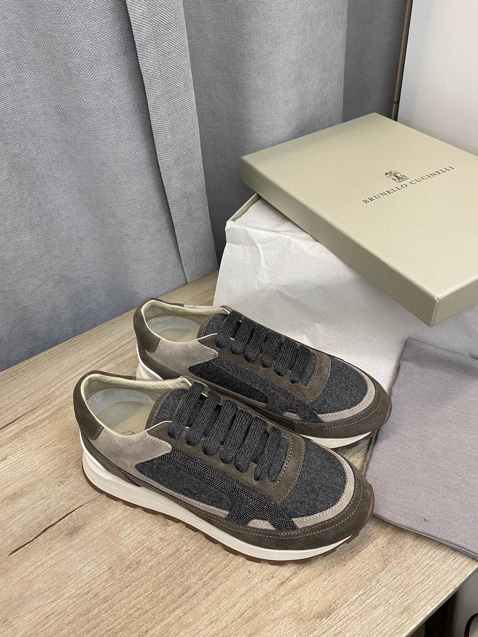 Кроссовки Brunello Cucinelli LUX-96019 представляют собой стильную обувь для повседневной носки. Кроссовки выполнены в комбинированном цвете, сочетающем серые, коричневые и белые оттенки. Дизайн кроссовок сочетает в себе спортивный стиль и элегантность, что делает их подходящими для различных образов.