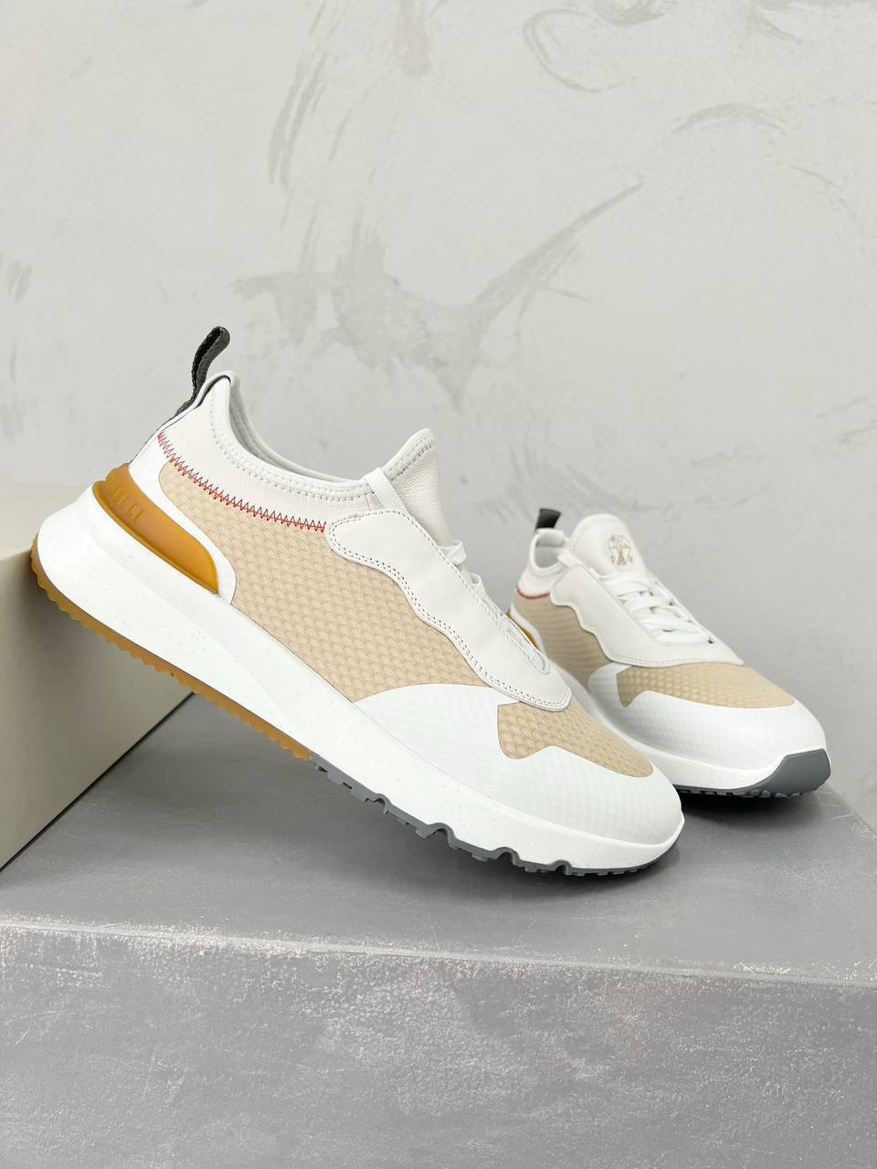 Мужские кроссовки Brunello Cucinelli LUX-90802 – это стильная и современная модель, сочетающая в себе комфорт и элегантный дизайн. Кроссовки выполнены в кремовом и бежевом цветах, что делает их универсальными для повседневного использования. Они идеально подойдут для создания как спортивных, так и casual образов.