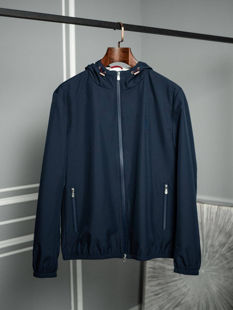 Куртка мужская Brunello Cucinelli LUX-104827 — это стильная и практичная модель в классическом стиле. Куртка темно-синего цвета, выполнена из гладкого материала с удобным капюшоном и застежкой-молнией. Предназначена для повседневной носки в демисезонный период.