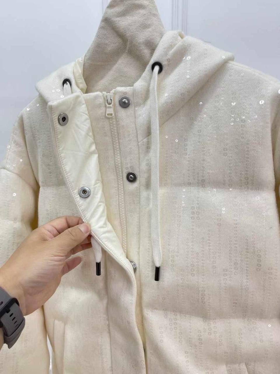 Куртка женская Brunello Cucinelli LUX-111880 – это воплощение элегантности и комфорта в зимнем гардеробе. Куртка выполнена в стиле casual, имеет прямой крой, капюшон и карманы, а также привлекает внимание своим блестящим декором. Идеальный выбор для создания стильных образов в холодное время года.