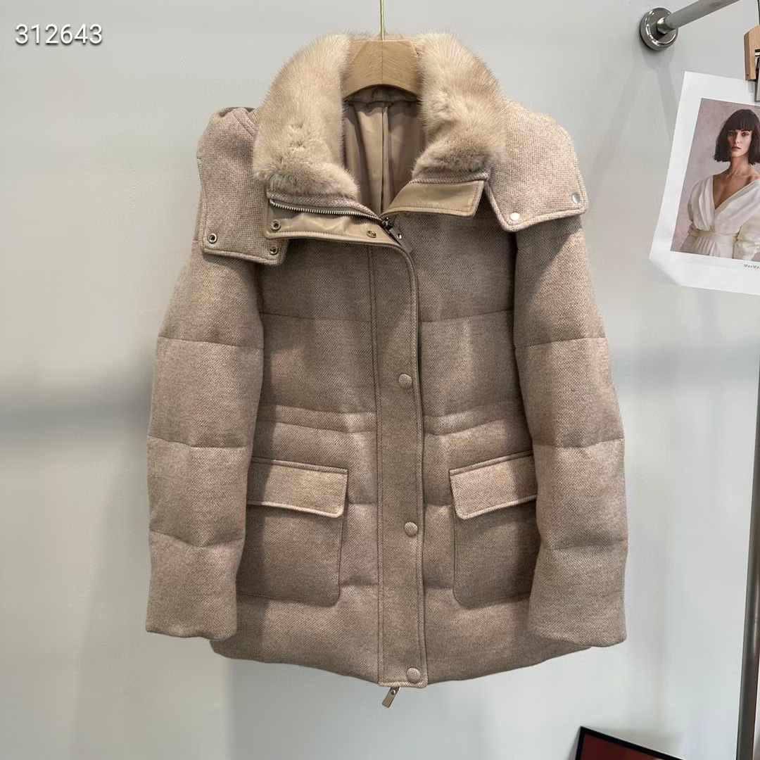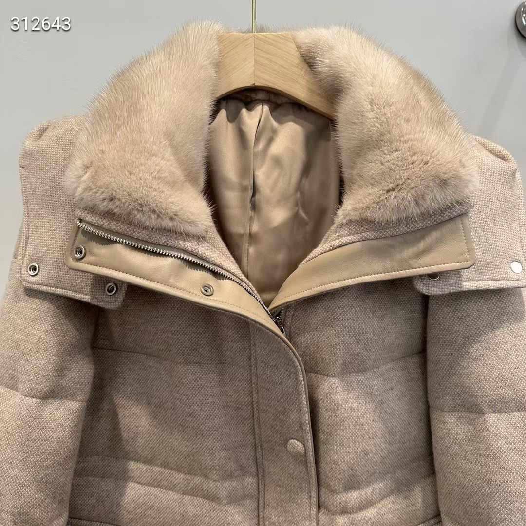 Куртка женская Brunello Cucinelli LUX-113222 представляет собой элегантную верхнюю одежду, выполненную в современном стиле. Куртка выполнена в бежевом цвете с пушистым воротником. Идеально подойдет для создания стильных образов в холодное время года.
