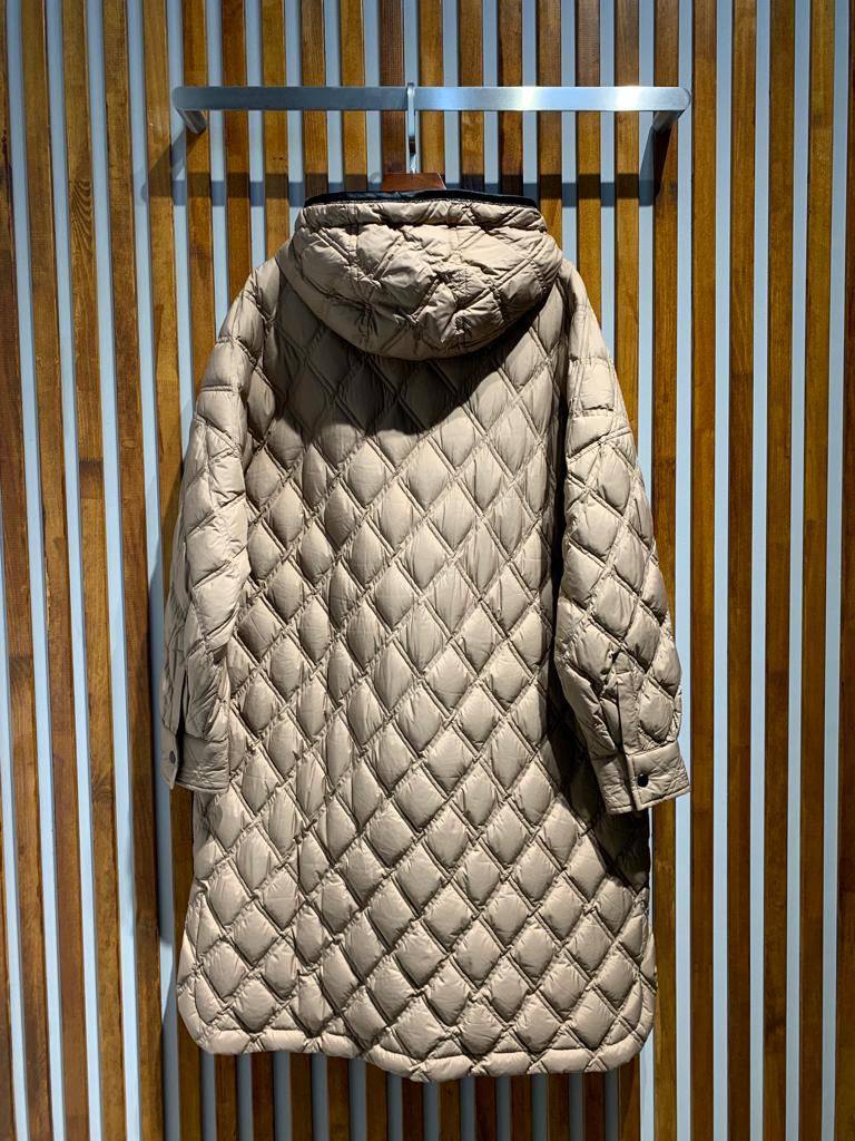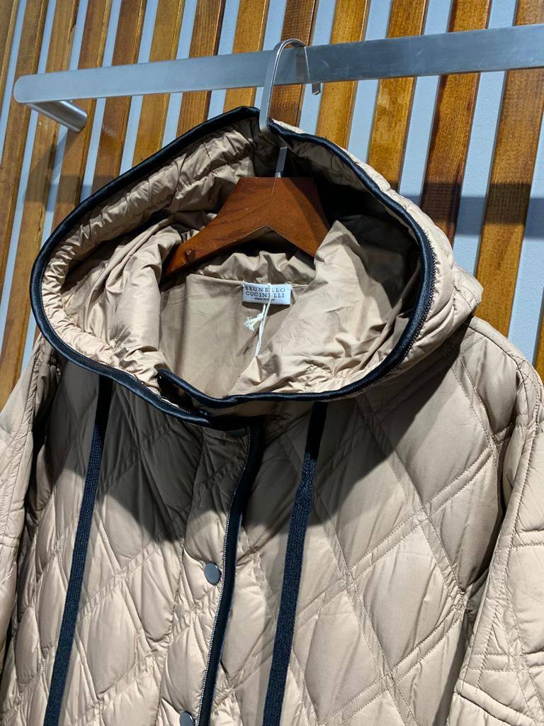 Пальто Brunello Cucinelli LUX-95023 – это воплощение стиля и комфорта. Пальто выполнено в нейтральном бежевом оттенке и имеет стёганый узор в форме ромбов. Это пальто идеально подойдёт для создания элегантных образов на каждый день.