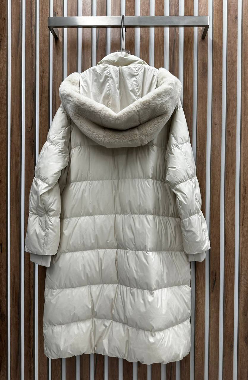 Пальто Brunello Cucinelli LUX-95980 – это элегантное и теплое пальто в современном стиле. Пальто кремового цвета с пуховым наполнителем, длинное, имеет капюшон с меховой отделкой и удобные карманы. Отлично подойдет для повседневной носки в холодное время года.