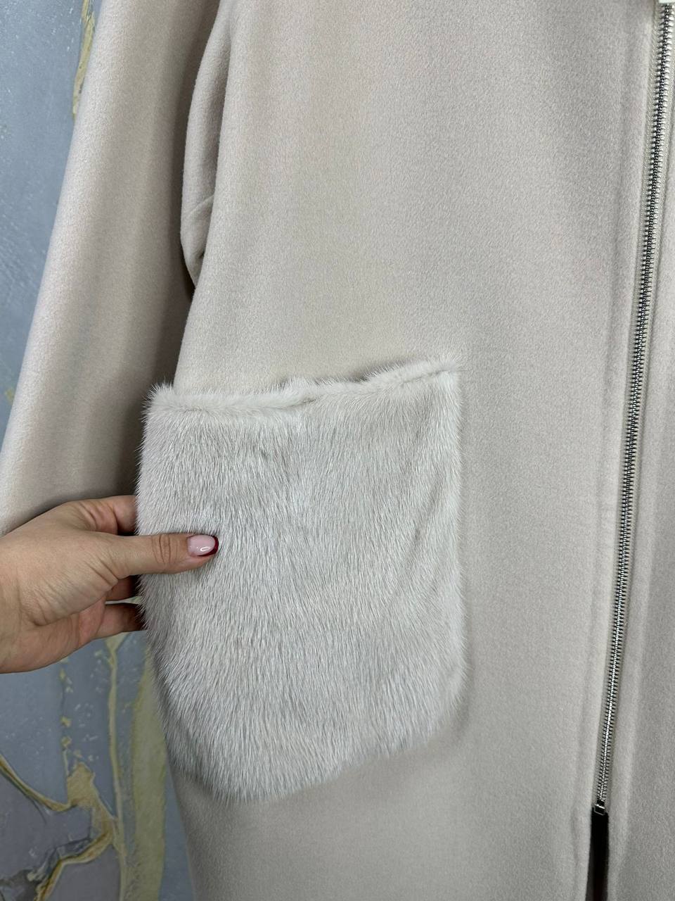 Пальто Brunello Cucinelli LUX-111969 - это элегантное пальто прямого кроя кремового оттенка. Модель выполнена из гладкой ткани, дополненной меховой отделкой на карманах, что придает изделию изысканный вид. Пальто подойдет для создания стильных образов в прохладную погоду.