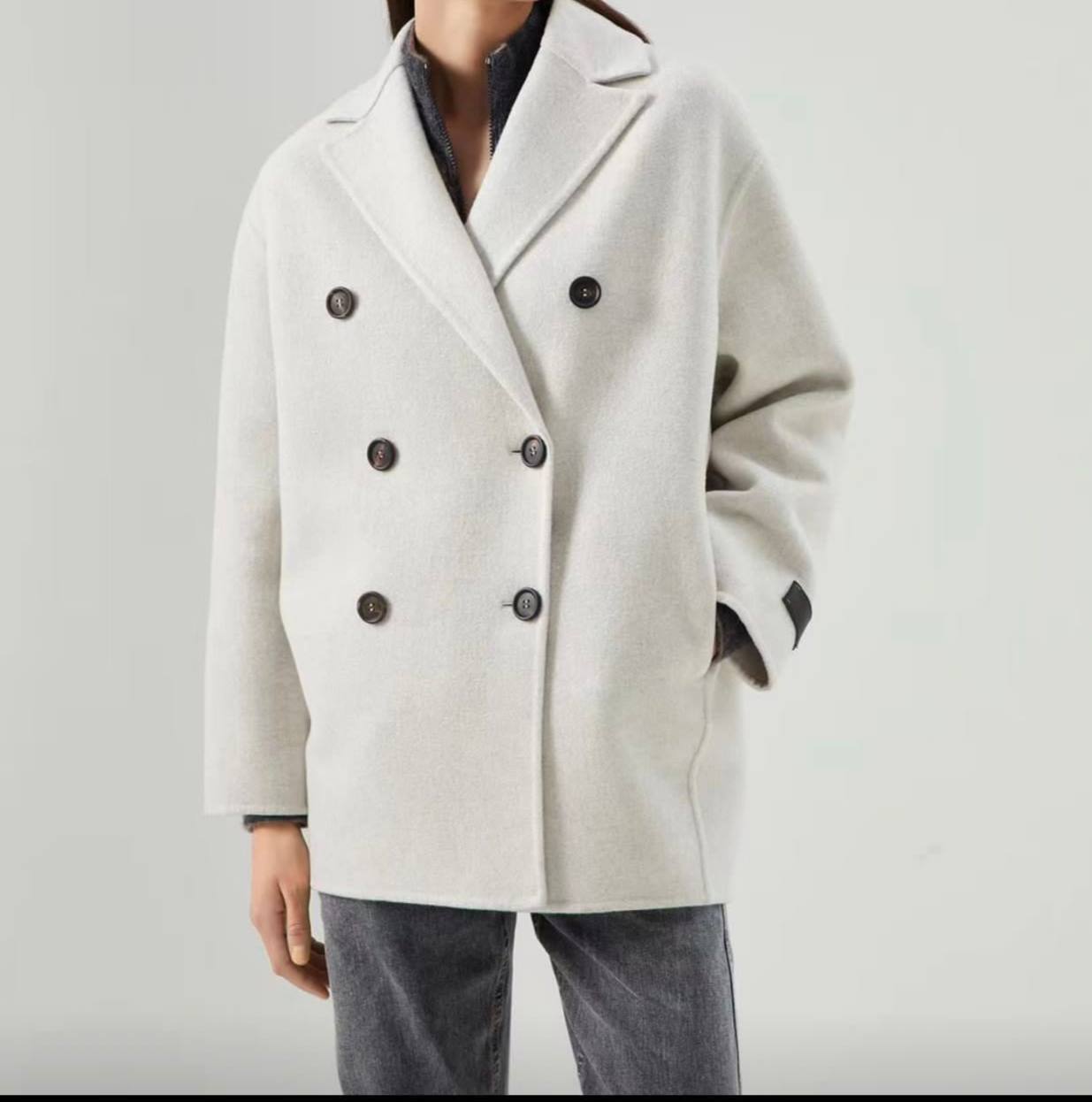 Пальто Brunello Cucinelli LUX-77594 - это элегантное двубортное пальто, которое отличается сдержанным дизайном и классическим кроем. Пальто выполнено в светлом оттенке, который придает ему универсальность и позволяет сочетать с различными элементами гардероба. Идеально подходит для создания стильных образов в прохладную погоду.