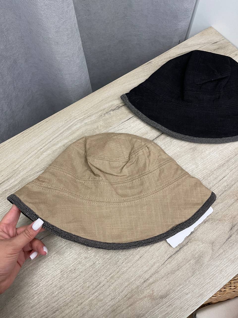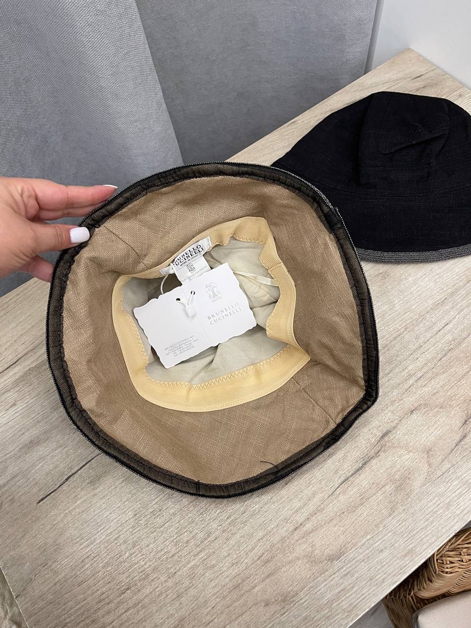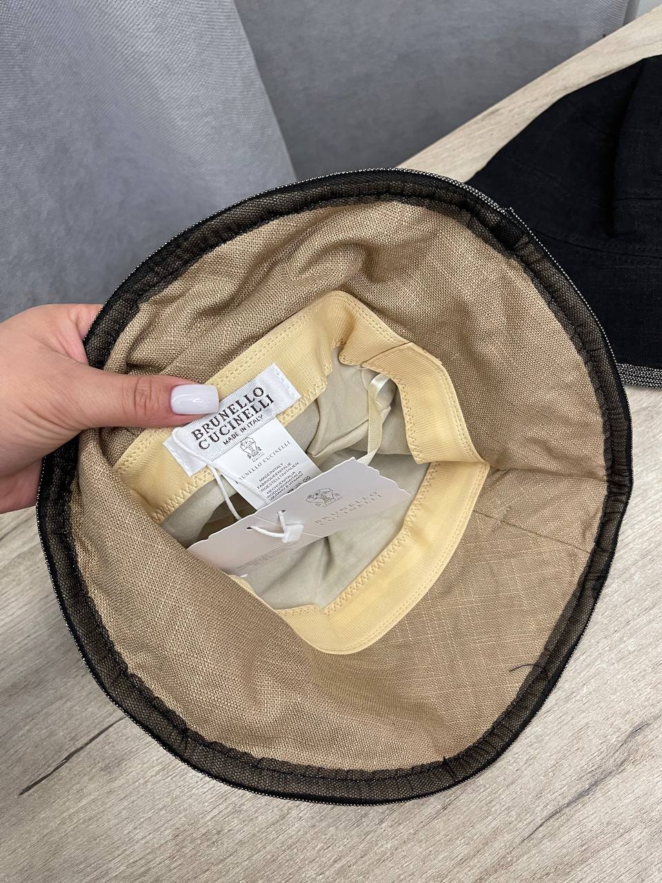 Панама Brunello Cucinelli (LUX-106000) - это стильный аксессуар, который идеально дополнит летний образ. Панама выполнена в бежевом цвете с темной окантовкой, придающей ей элегантный вид. Идеально подходит для защиты от солнца и создания модного образа.