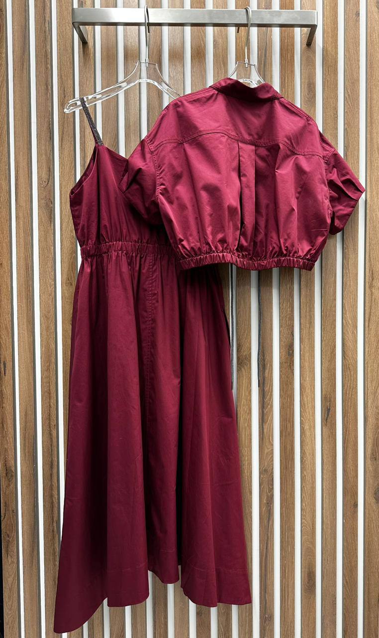 Платье Brunello Cucinelli LUX-90671 представлено в виде элегантного платья-комбинации с регулируемыми бретелями. Платье выполнено в бордовом цвете, который добавляет образу изысканности. Идеально подходит для создания утонченного и запоминающегося образа.