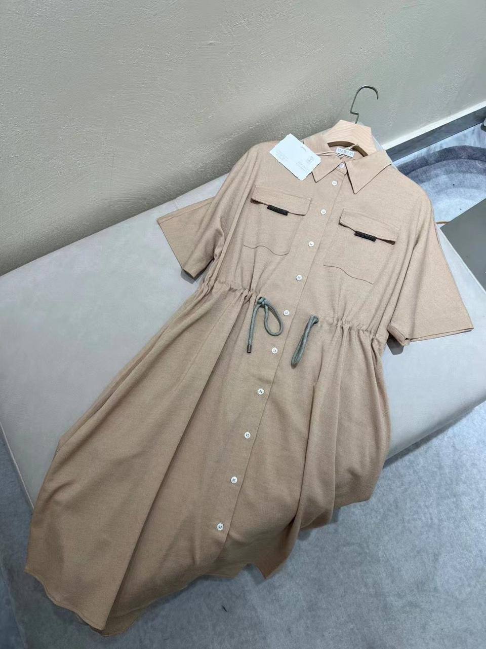 Платье Brunello Cucinelli Plate 41, LUX-104484 — это изысканное платье рубашечного кроя в универсальном бежевом оттенке. Его простой, но элегантный дизайн делает его идеальным выбором для различных случаев, от повседневных прогулок до более формальных мероприятий. Платье обладает структурированным силуэтом и деталями, добавляющими изысканности.