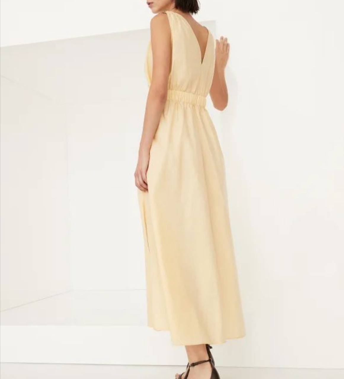 Платье Brunello Cucinelli LUX-108923 представляет собой элегантное платье в стиле casual, выполненное в нежном желтом цвете. Оно имеет приталенный силуэт с V-образным вырезом, широкую юбку с разрезом, акцентом на талии в виде пояса с пряжкой. Идеально подойдет для создания стильного и комфортного образа.
