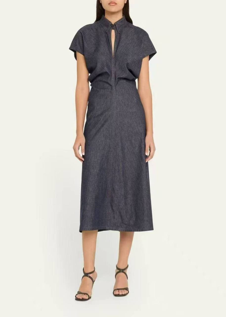Платье Brunello Cucinelli LUX-116443 — это стильное платье темно-синего цвета из денима, идеально подходящее для создания элегантного образа. Платье имеет классический крой с рукавами-крылышками и застежкой-молнией спереди. Это универсальная вещь, которая подойдет как для повседневной носки, так и для особых случаев.