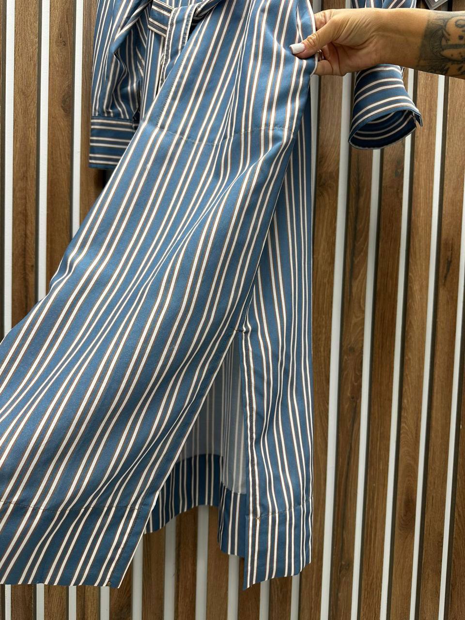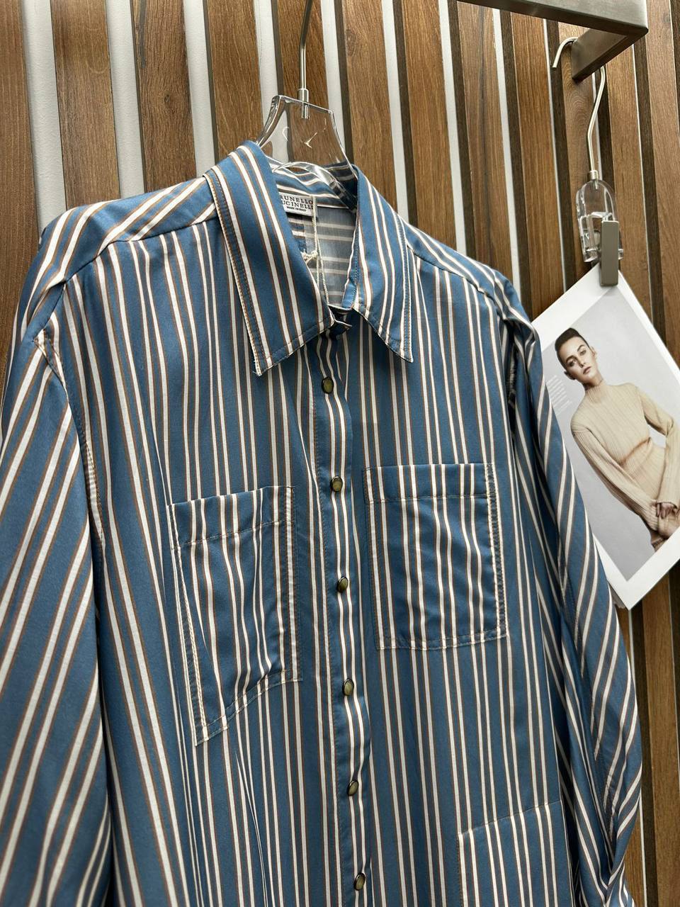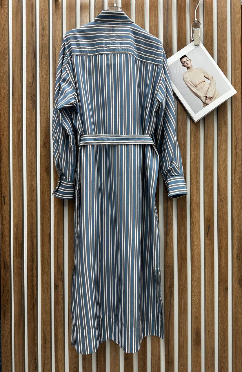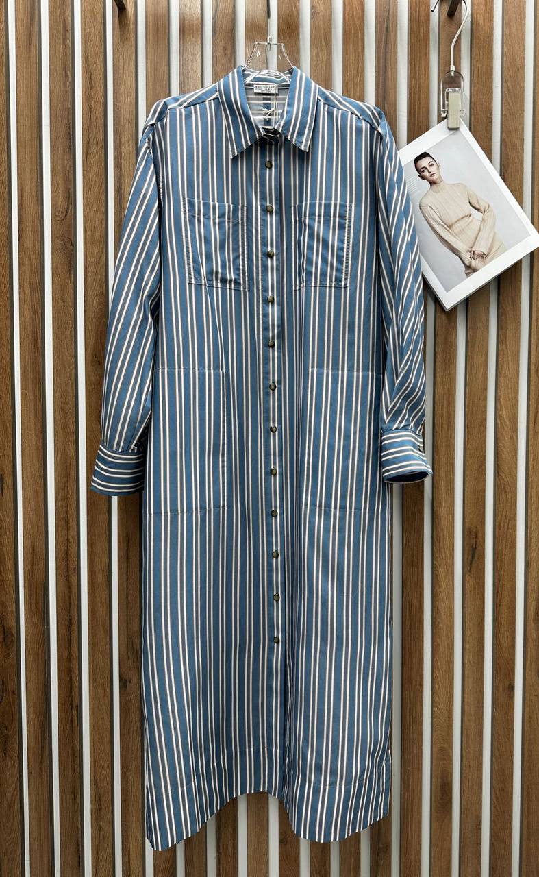 Платье Brunello Cucinelli LUX-119006 — это стильное платье-рубашка, которое можно носить как самостоятельный предмет гардероба, так и в качестве легкого пальто. Полосатый принт в сине-белых тонах придает образу свежесть и легкость. Идеально подойдет для создания элегантных и модных образов.