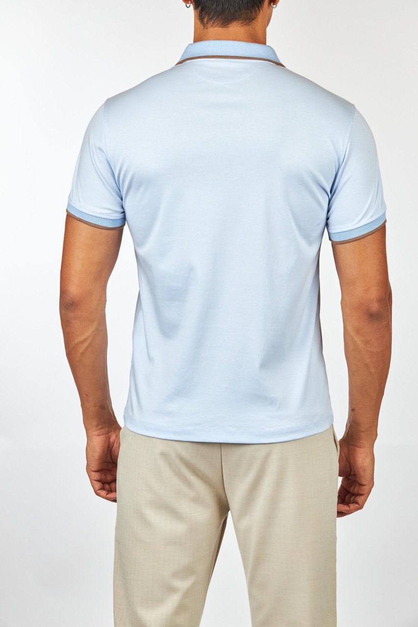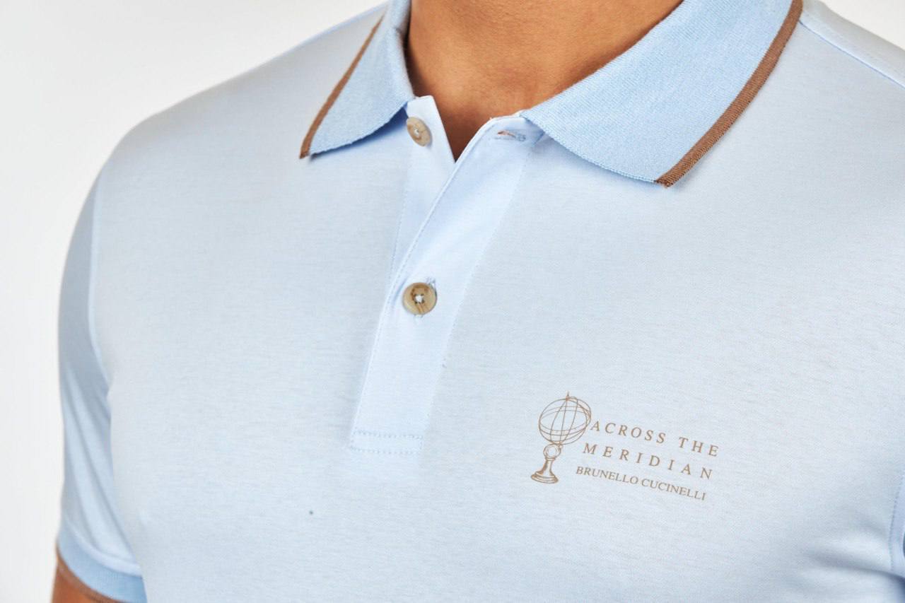 Поло Brunello Cucinelli LUX-106939 — это воплощение изысканности и стиля. Голубое поло с коричневыми акцентами на воротнике и рукавах создает элегантный образ. Идеально подходит для повседневного ношения или для создания более формального образа.