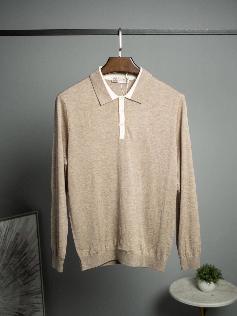 Поло Brunello Cucinelli LUX-113227 – это элегантное поло песочного цвета с длинными рукавами. Эта модель выполнена в классическом стиле, который подойдёт как для повседневной носки, так и для более формальных мероприятий. Текстура ткани выглядит мягкой и приятной на ощупь.