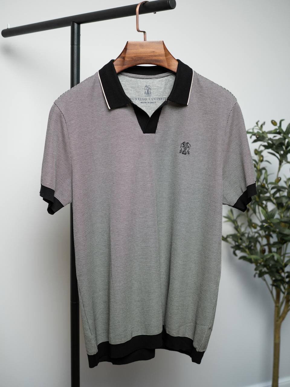 Поло Brunello Cucinelli LUX-120086 – это элегантная модель в классическом стиле. Поло выполнено в серо-черном цвете с контрастными деталями. Этот предмет гардероба идеально подойдет для создания как повседневных, так и более формальных образов.