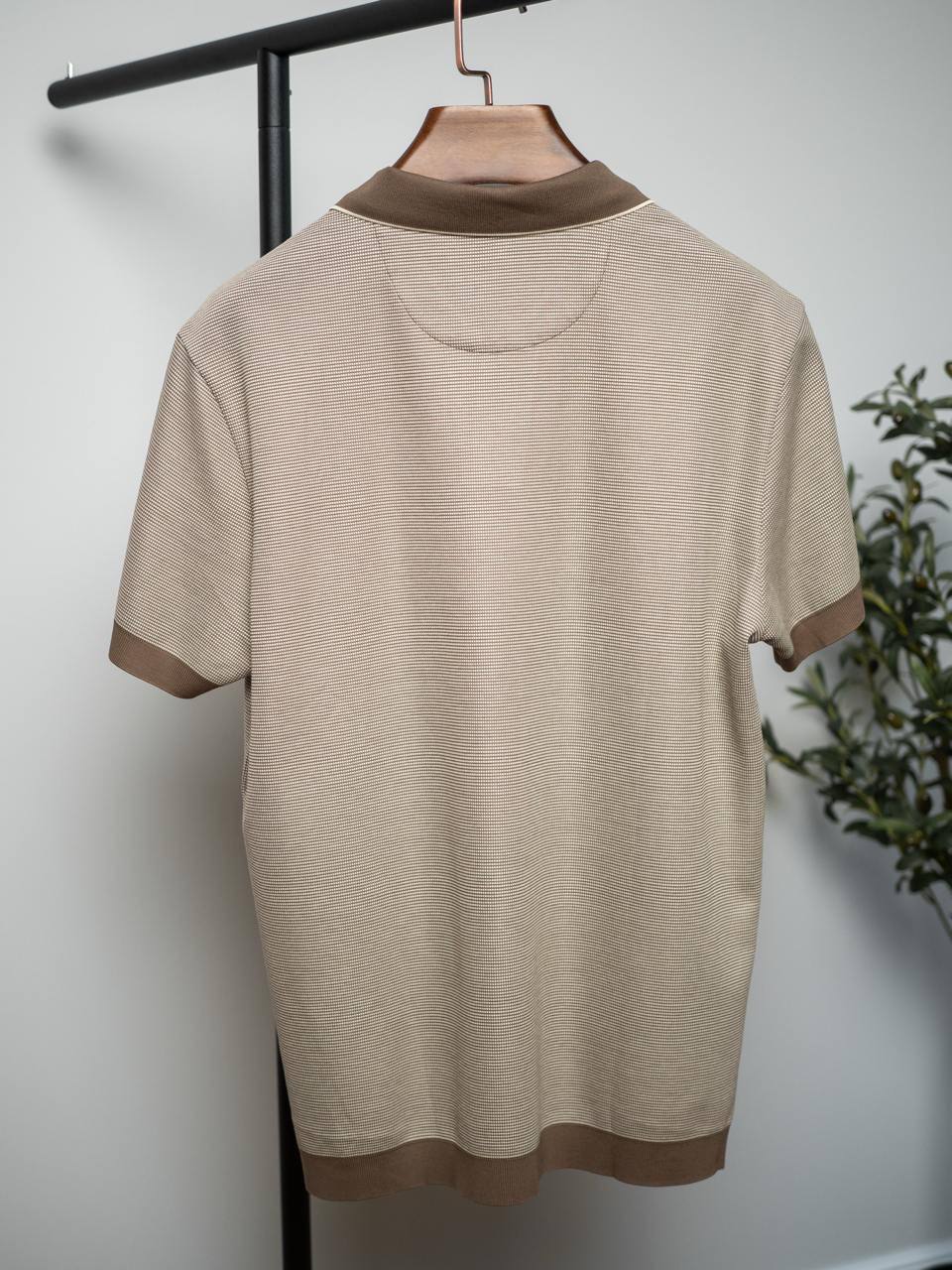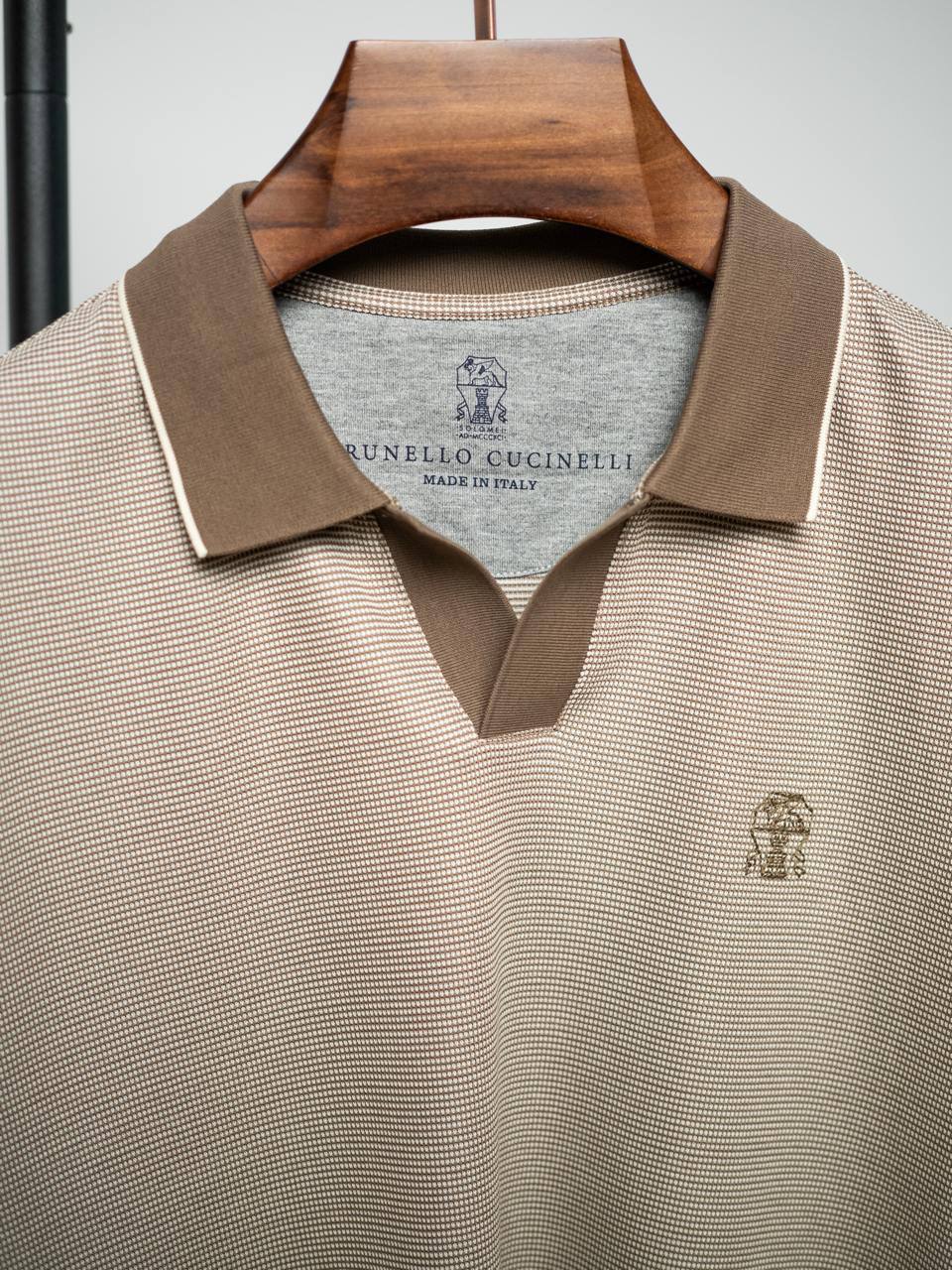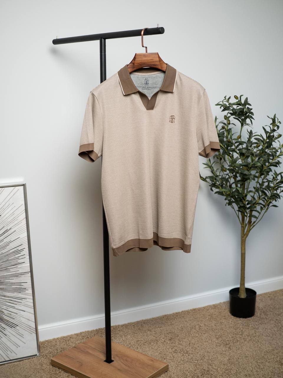 Поло Brunello Cucinelli LUX-120088 представляет собой элегантную модель в классическом стиле. Цвет поло – бежевый с коричневыми деталями, придающими изделию утонченный вид. Идеально подойдет для создания стильных образов в повседневной жизни или для особых случаев.