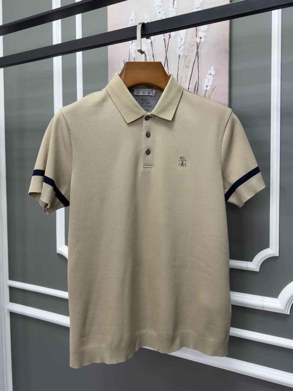 Поло Brunello Cucinelli, артикул LUX-105587, воплощает в себе элегантность и комфорт. Классический стиль поло выполнен в теплом бежевом оттенке с контрастными темно-синими полосками на рукавах. Этот предмет гардероба идеально подойдет для создания стильных и утонченных образов.