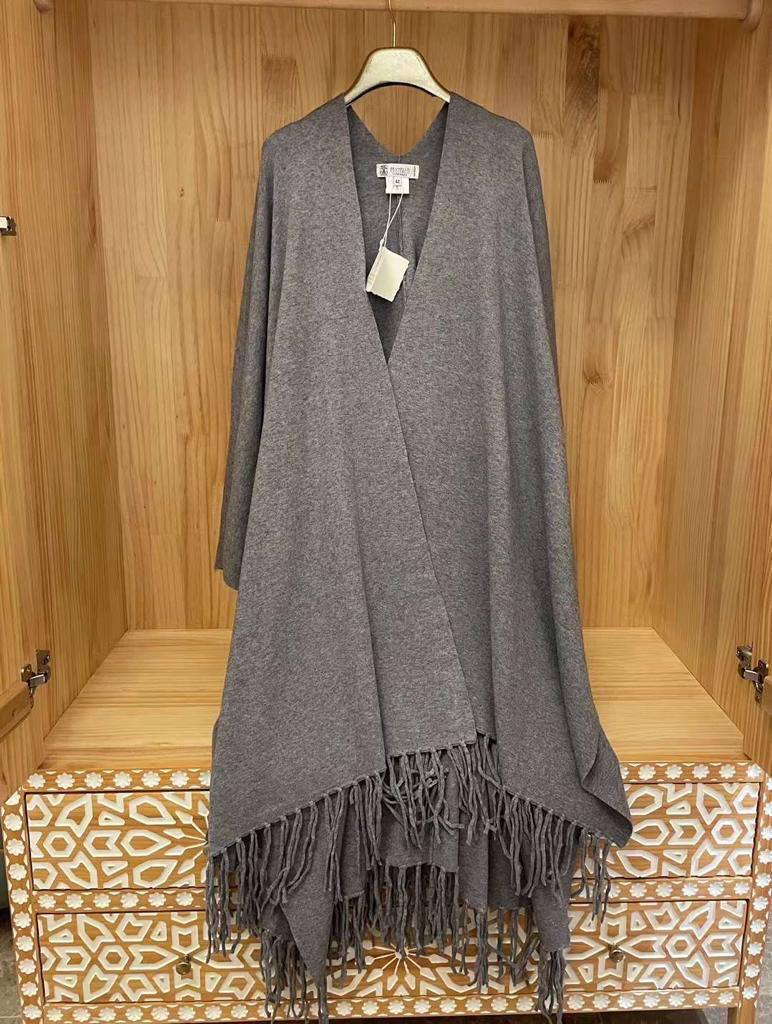 Пончо Brunello Cucinelli LUX-95862 — это элегантное и стильное изделие, представляющее собой воплощение итальянской роскоши. Серое пончо с бахромой идеально подходит для создания утонченного образа. Оно придаст любому наряду нотку изысканности и обеспечит комфорт.