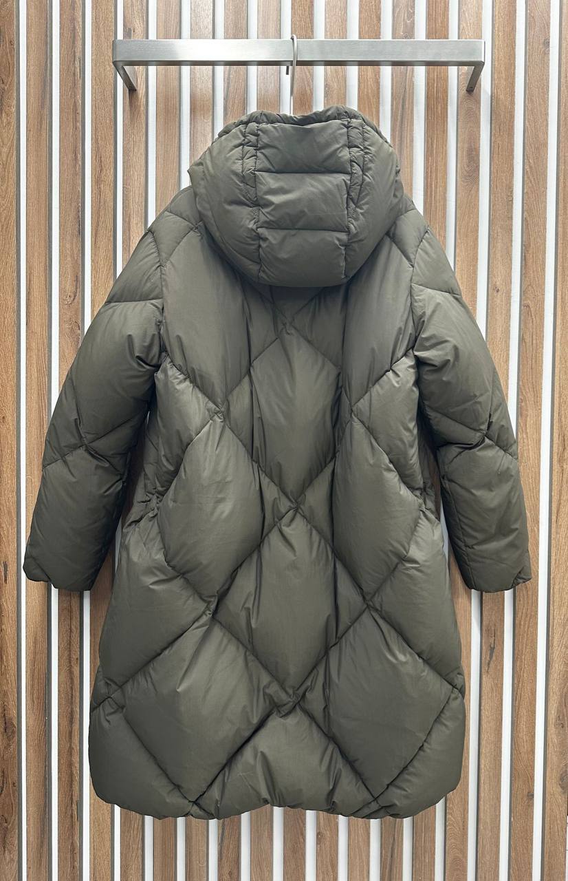 Пуховик Brunello Cucinelli LUX-97556 – это стильная верхняя одежда для холодной погоды. Пуховик представлен в цвете хаки и имеет стеганый ромбовидный узор, который придает ему современный вид. Модель выполнена в классическом стиле с капюшоном, который обеспечивает дополнительную защиту от ветра и холода.
