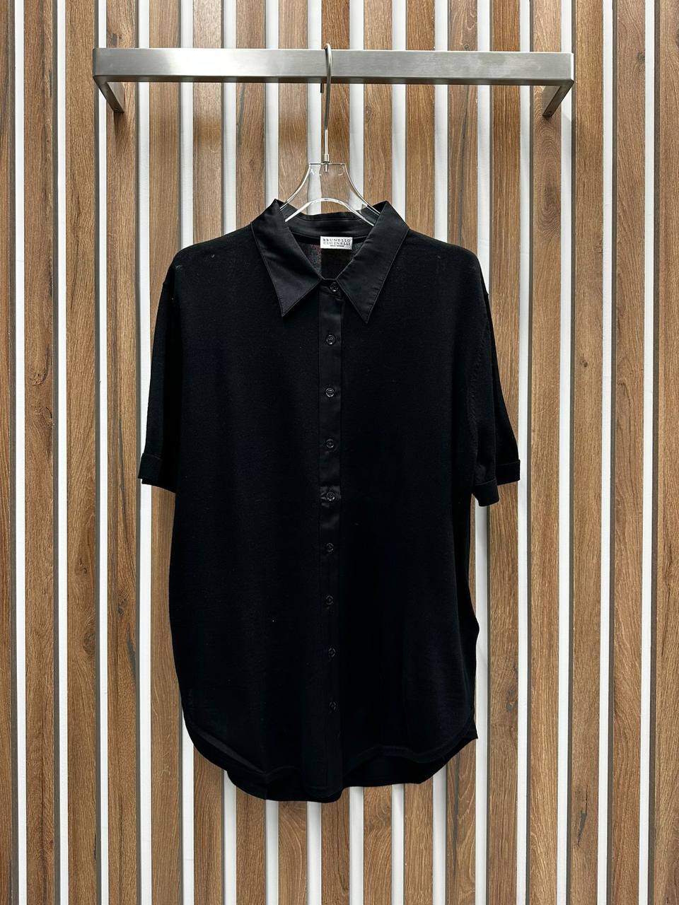 Рубашка Brunello Cucinelli LUX-89749 – это элегантная модель с короткими рукавами и классическим силуэтом. Рубашка выполнена в черном цвете, имеет контрастный воротник из атласной ткани. Прекрасно подойдет для создания стильного образа.