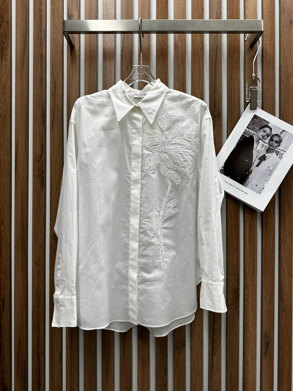 Рубашка Brunello Cucinelli LUX-106872 — это предмет гардероба, который излучает элегантность и изысканность. Белая рубашка свободного кроя выполнена в полупрозрачном дизайне с цветочной вышивкой на груди. Идеально подойдет для создания утонченного образа в различных ситуациях.