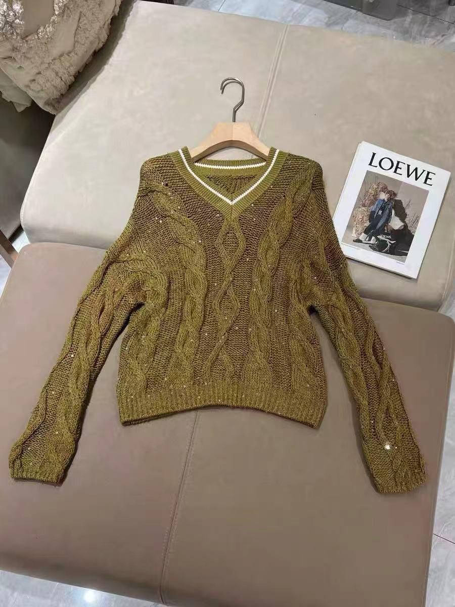 Свитер Brunello Cucinelli – изысканный предмет гардероба, сочетающий в себе стиль и комфорт. Этот вязаный свитер с V-образным вырезом станет прекрасным дополнением к вашему образу.