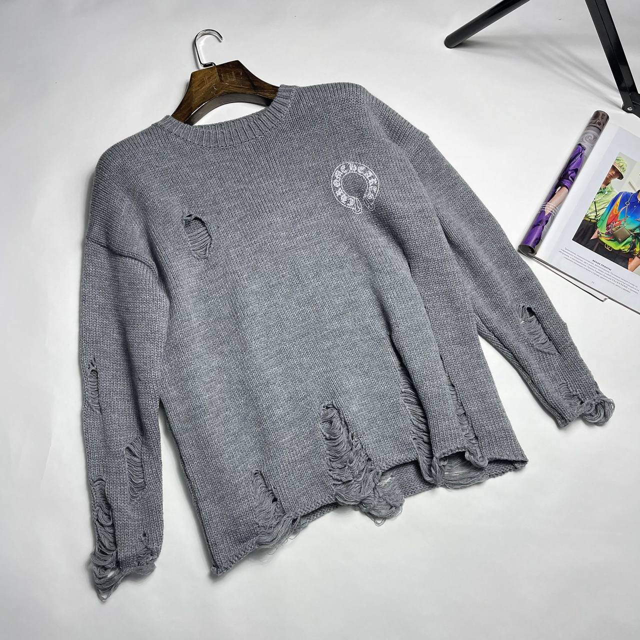 Свитер мужской Brunello Cucinelli LUX-96065 — это стильный свитер серого цвета с оригинальным дизайном. Он отличается свободным кроем и декоративными элементами в виде рваных деталей. Этот свитер подойдет для создания модных повседневных образов.