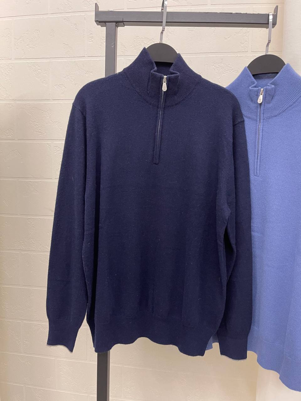 Мужской свитер Brunello Cucinelli (LUX-101667) — это воплощение элегантности и комфорта. Модель выполнена в темно-синем цвете, имеет текстуру трикотажа и воротник-стойку с короткой молнией. Идеальный выбор для создания стильного и теплого образа в прохладную погоду.