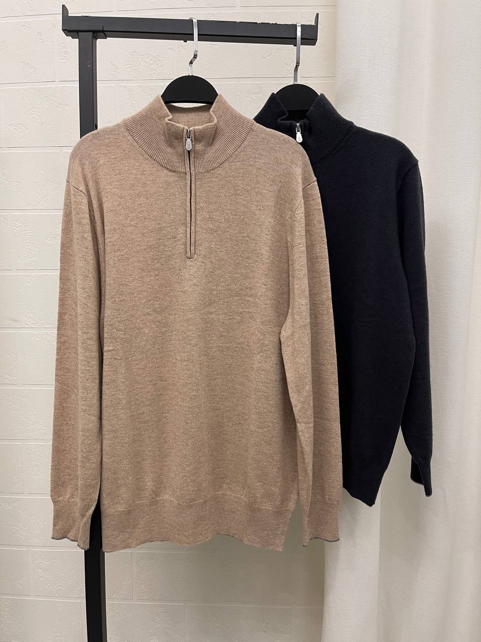 Свитер мужской Brunello Cucinelli LUX-101670 – это воплощение элегантности и комфорта. Модель выполнена в классическом стиле, с высоким воротником на молнии и прямым силуэтом. Свитер приятного бежевого оттенка, что делает его универсальным для различных образов.