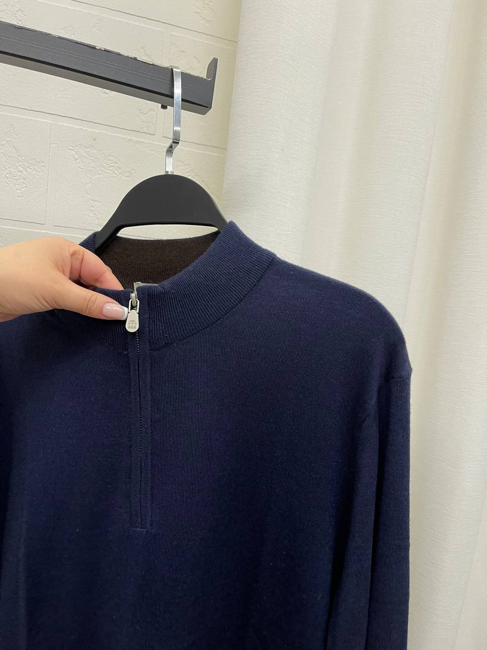 Мужской свитер Brunello Cucinelli LUX-101672 представляет собой элегантный предмет гардероба. Свитер выполнен в классическом стиле, темно-синего цвета, с высоким воротником на молнии. Он идеально подходит для создания стильного образа в прохладную погоду.