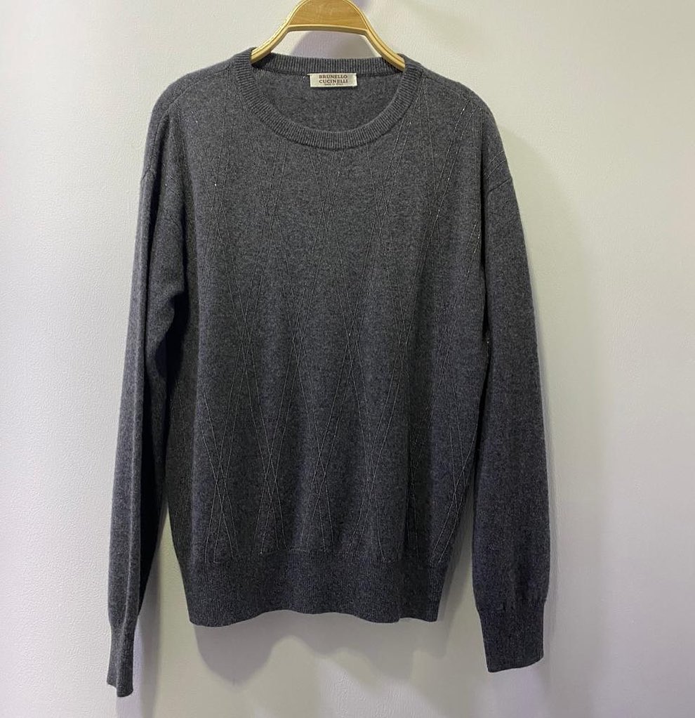 Свитер женский Brunello Cucinelli — это элегантное и универсальное дополнение к вашему гардеробу, выполненное в классическом стиле. Его нежный серый оттенок и утонченный узор в виде ромбов придают ему изысканности. Идеально подходит для создания как повседневных, так и более формальных образов.