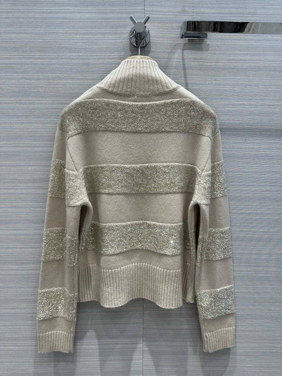 Свитер женский Brunello Cucinelli LUX-100415 – это стильный предмет гардероба, который подчеркнет элегантность и изысканность образа. Свитер выполнен в бежевых тонах с декоративными полосами с блестящим декором. Идеально подойдет для создания повседневных и праздничных образов.