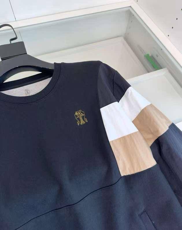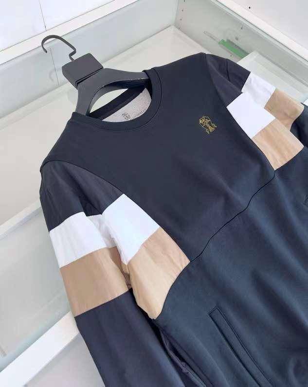 Толстовка Brunello Cucinelli LUX-109825 - это стильный предмет гардероба, сочетающий в себе спортивный крой и элементы премиум-класса. Толстовка выполнена в основном в черном цвете с контрастными вставками на рукавах в белом и бежевом цветах. Это изделие идеально подойдет для повседневного образа, обеспечивая комфорт и подчеркивая индивидуальный стиль.