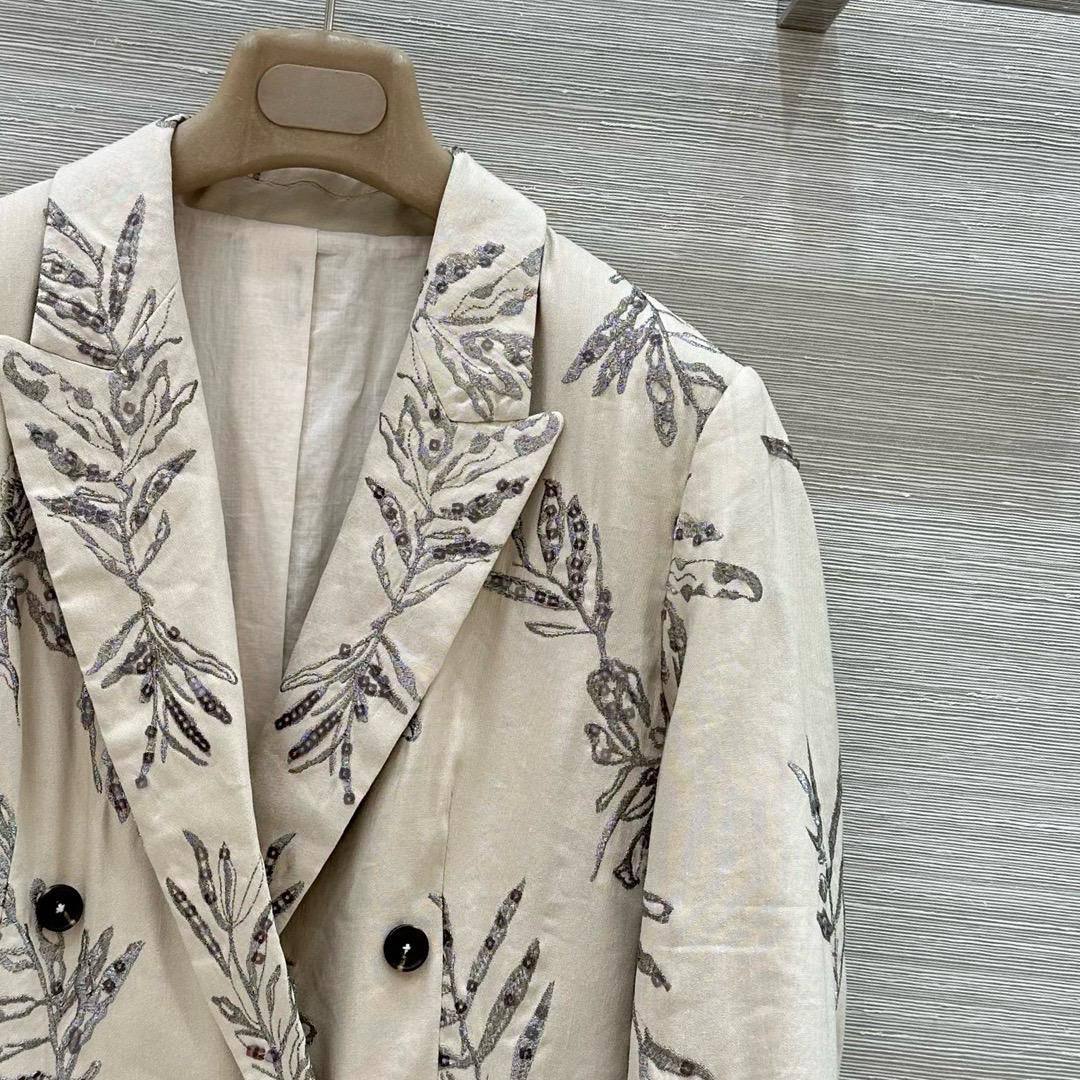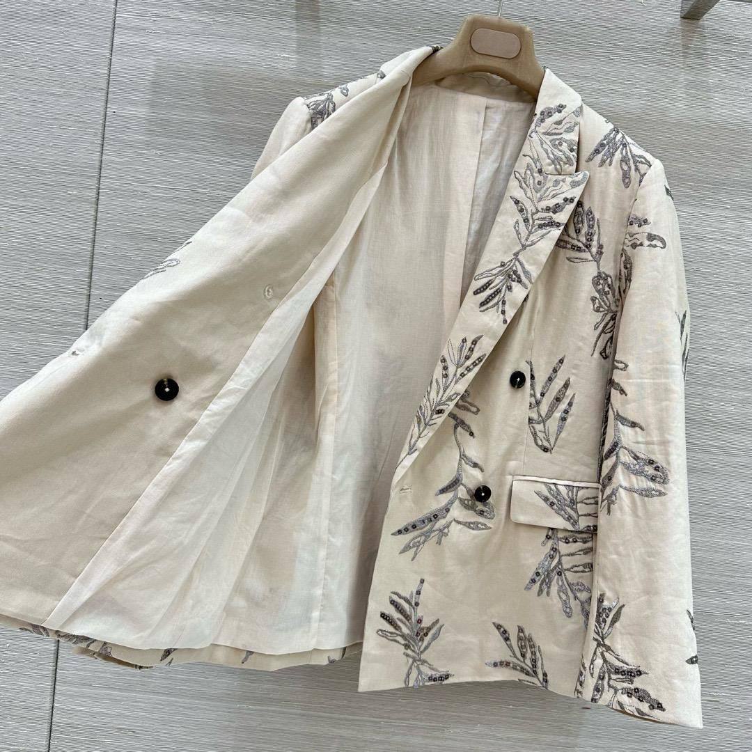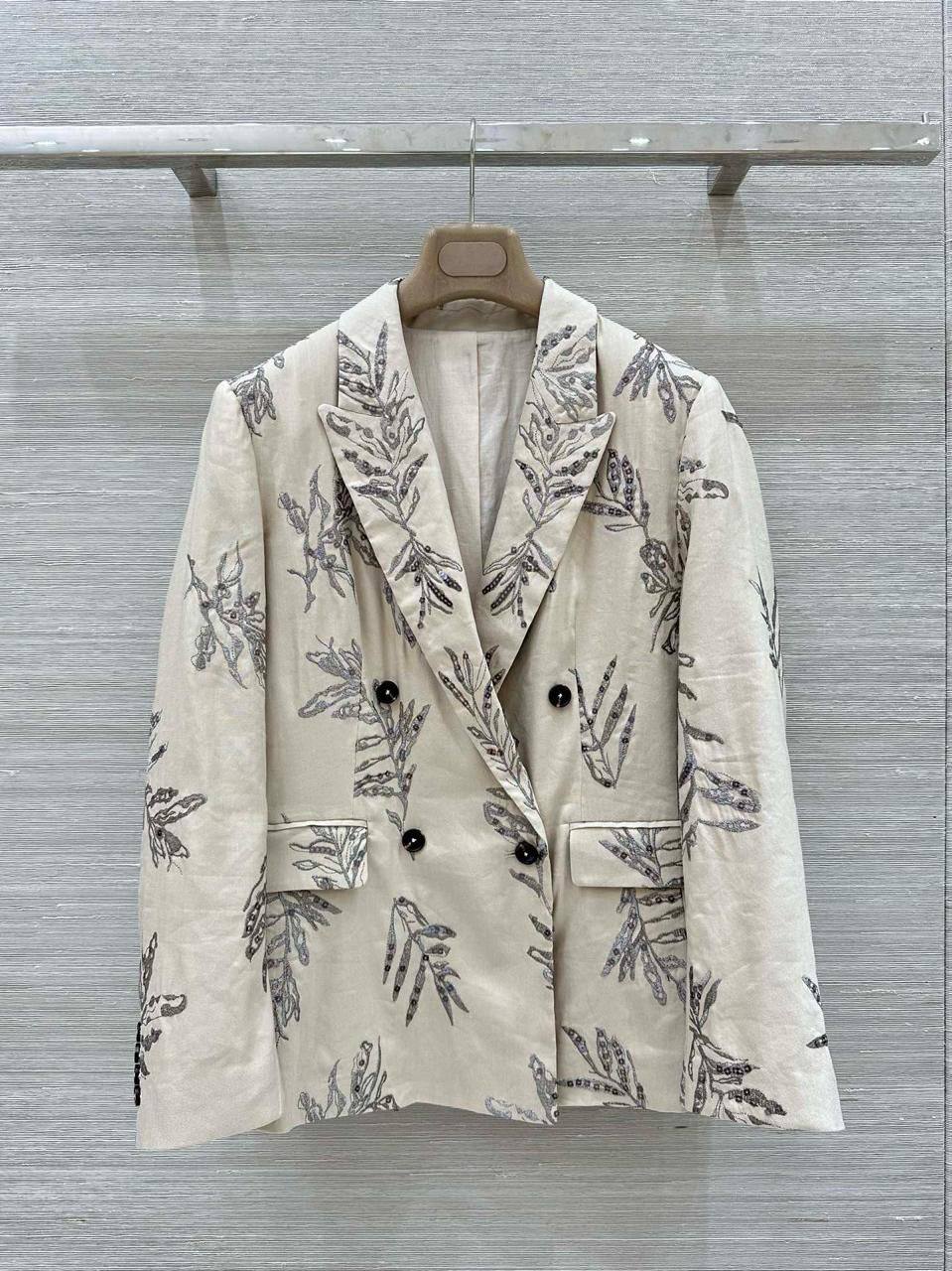 Жакет Brunello Cucinelli LUX-117174 – это элегантный предмет гардероба, который сочетает в себе изысканность и современный стиль. Жакет выполнен в кремовом оттенке с уникальным растительным принтом, который придает ему неповторимый вид. Двубортный крой и приталенный силуэт делают его идеальным выбором для создания как деловых, так и повседневных образов.