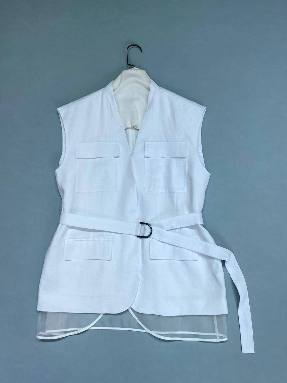 Жилет Brunello Cucinelli LUX-116466 — это элегантный жилет белого цвета, выполненный в современном стиле. Жилет имеет четкую текстуру, прямой крой и пояс, подчеркивающий талию. Этот жилет станет идеальным дополнением к вашему гардеробу, подходя как для повседневных образов, так и для более формальных случаев.